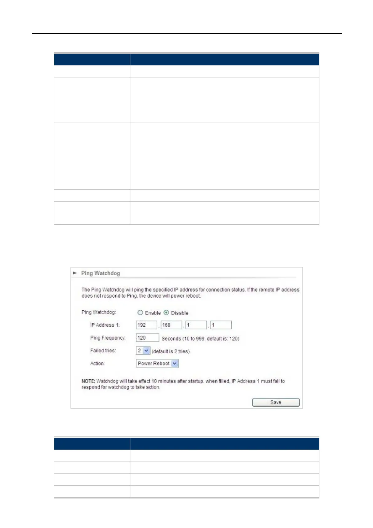 Click “System Configuration” “Ping Watchdog” and the following page will be displayed.