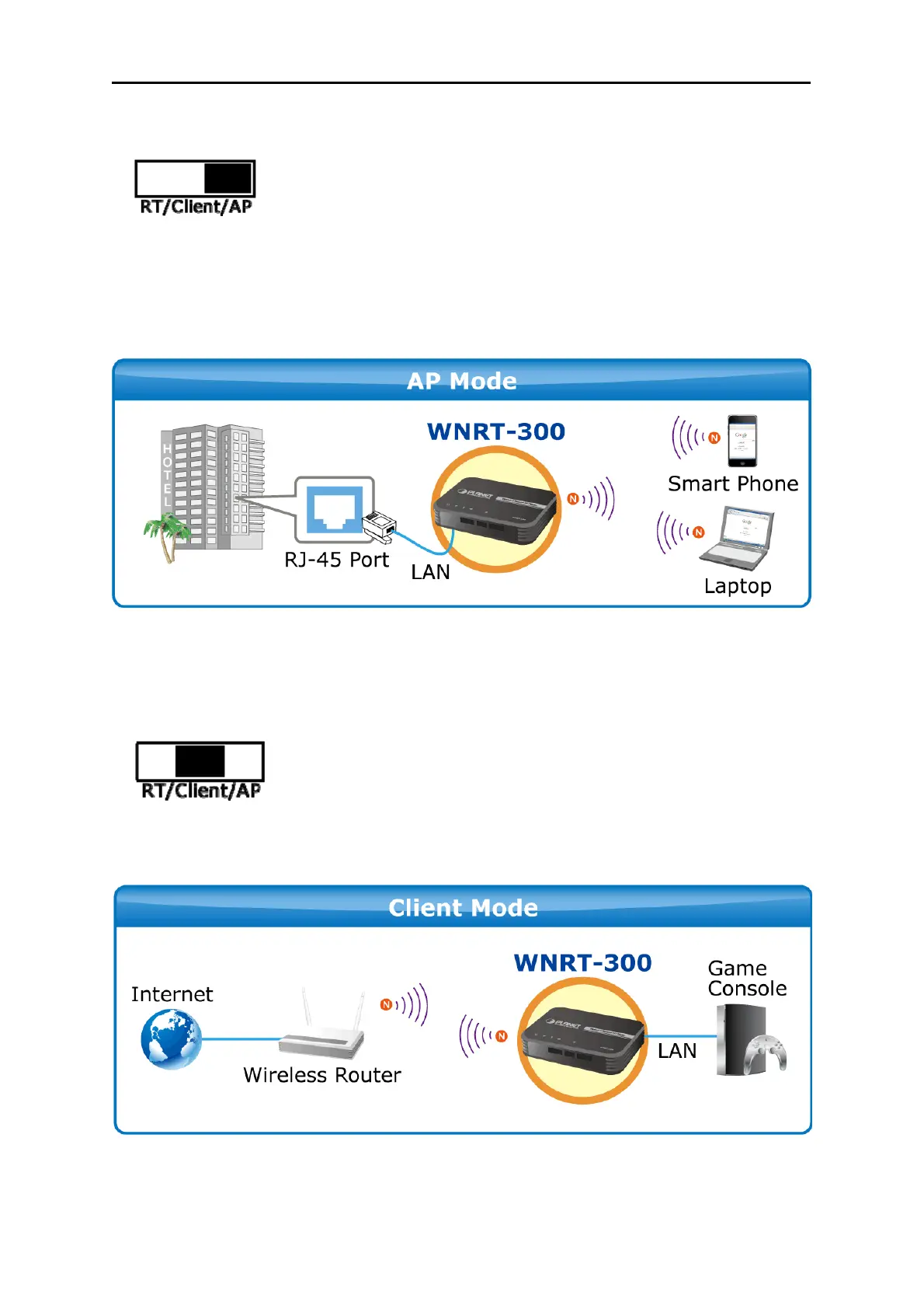 In Client Mode, the WNRT-300 is supposed to act as a wireless station for the PC. Users can site