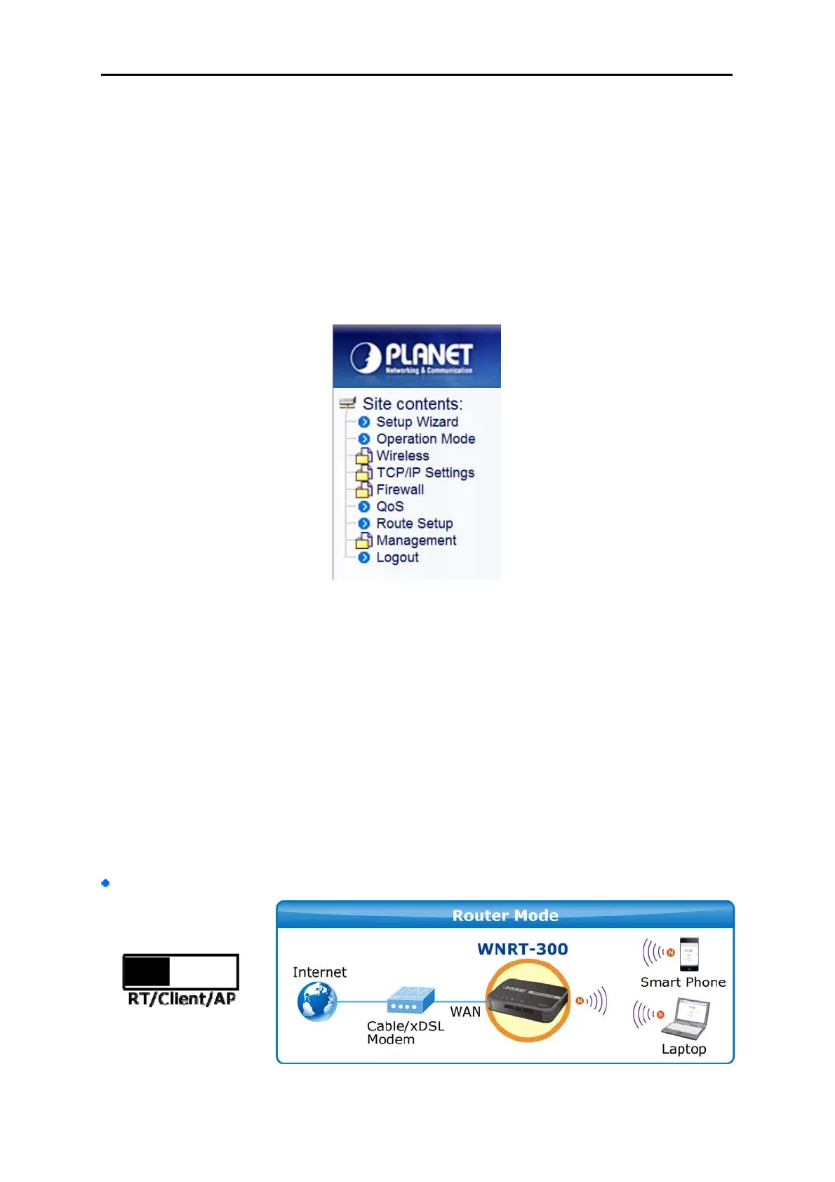 No matter what operation mode you switch to on the WNRT-300, the first screen you enter into the