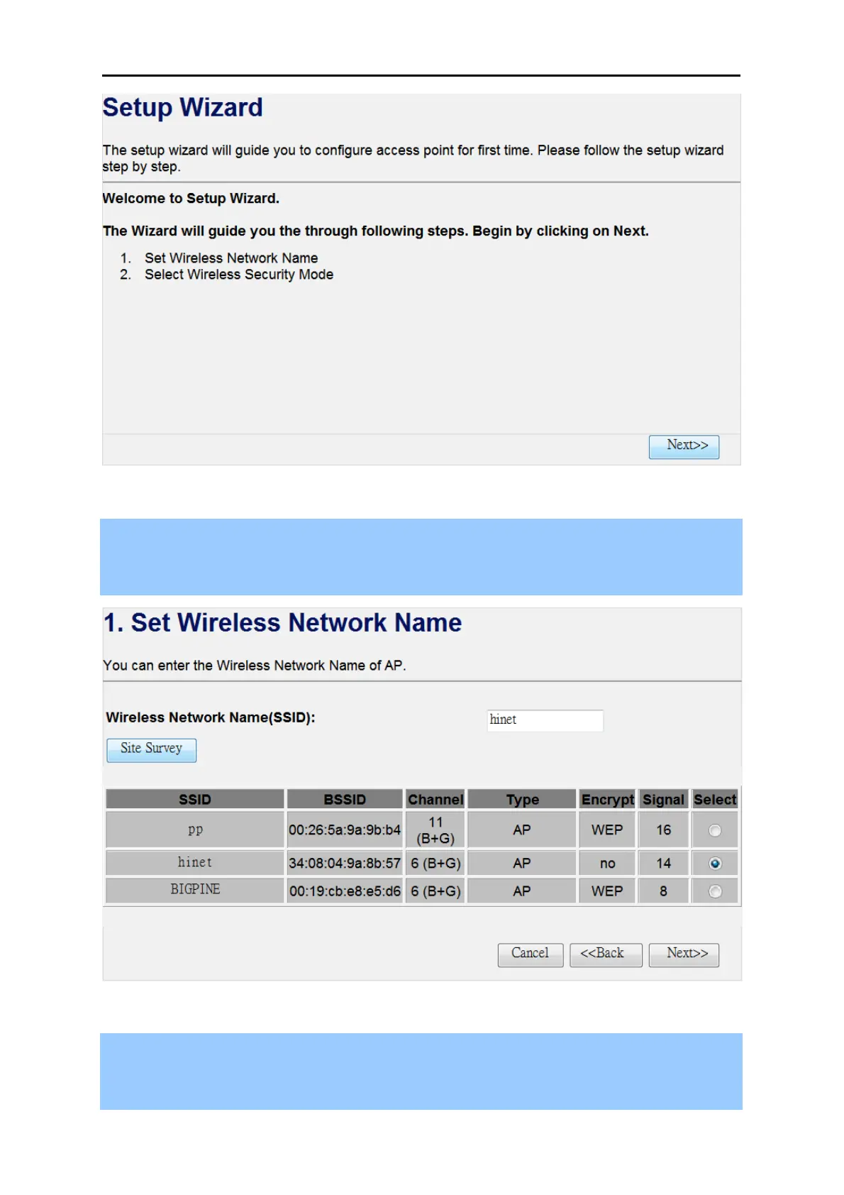 choose the AP you want to connect to, and click the “Next>>” button to continue.