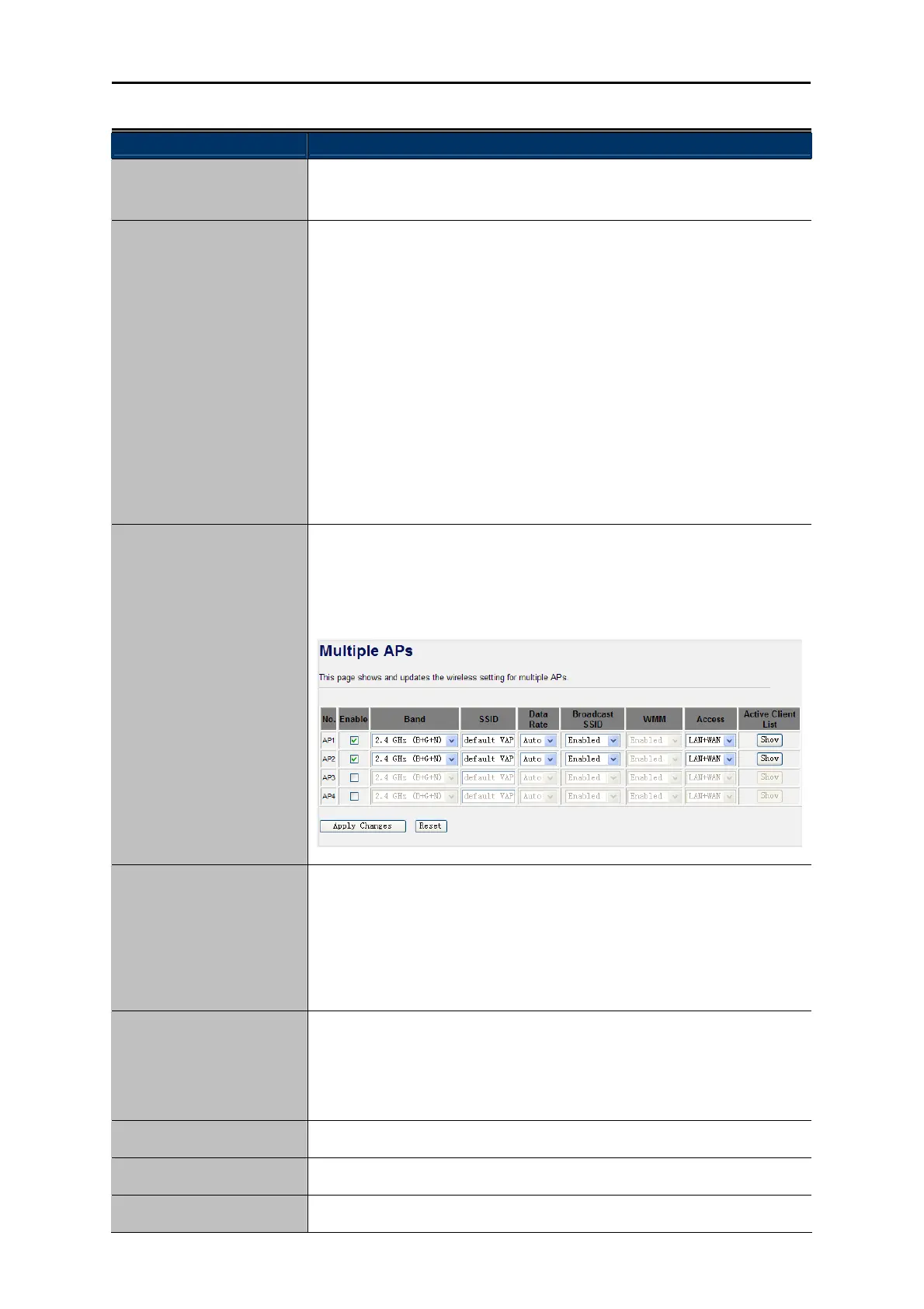 Band Select the desired mode. Default is “2.4GHz (B+G+N)”. It is strongly