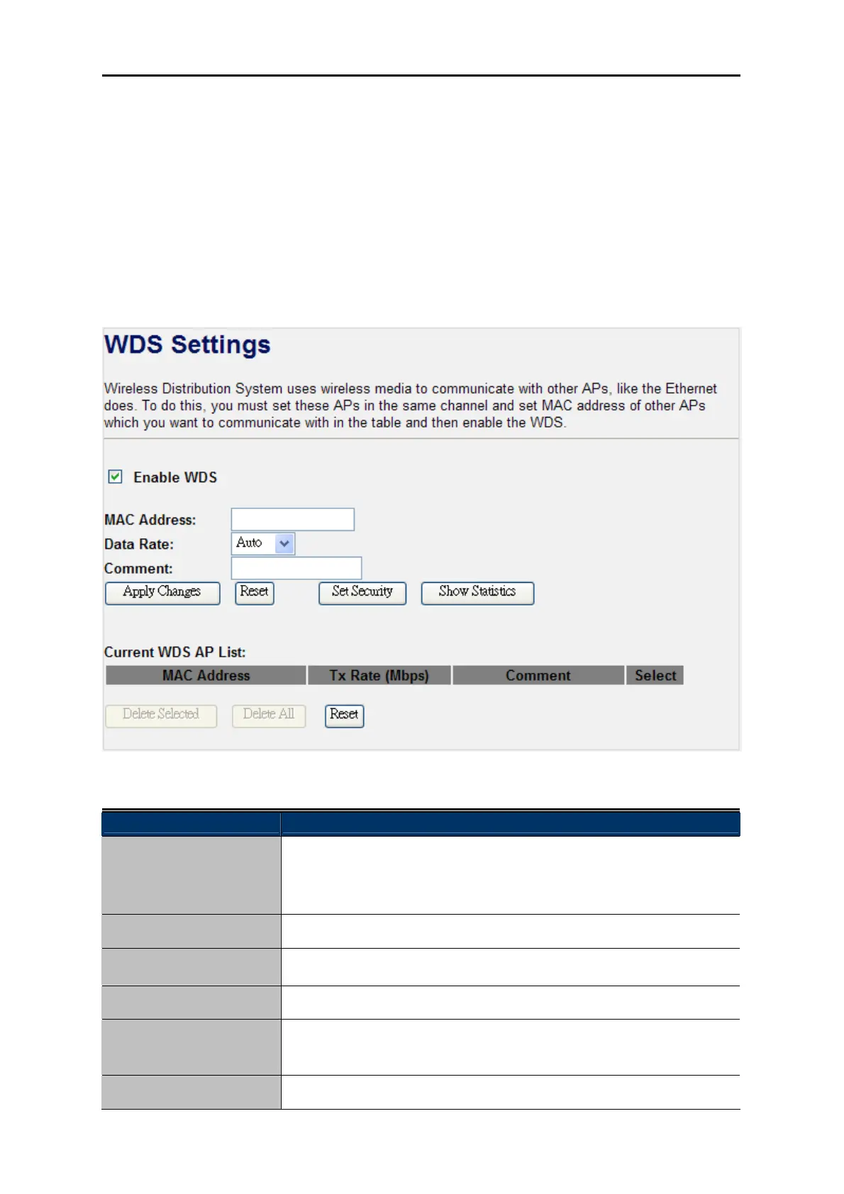 other APs which you want to communicate with in the table and then enable the WDS.