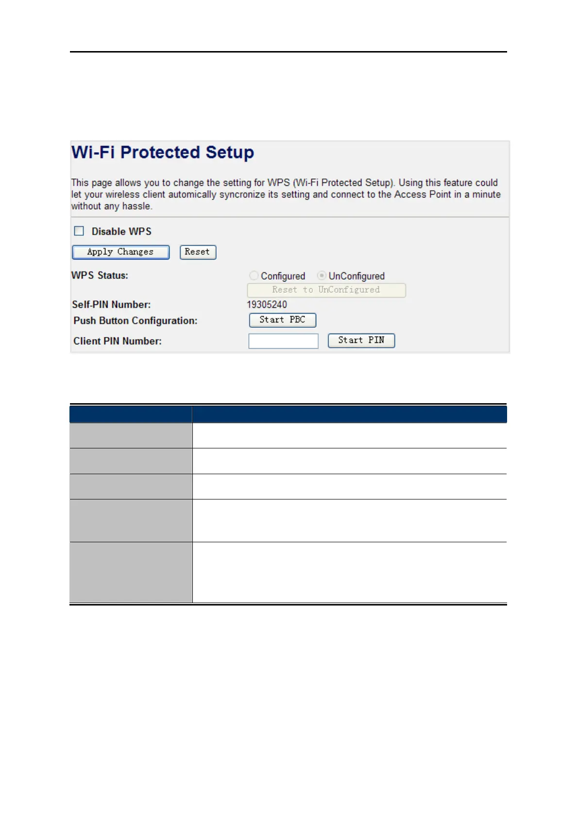 Choose menu “Wireless WPS”, and you can configure the setting for WPS (Wi-Fi Protected Setup).