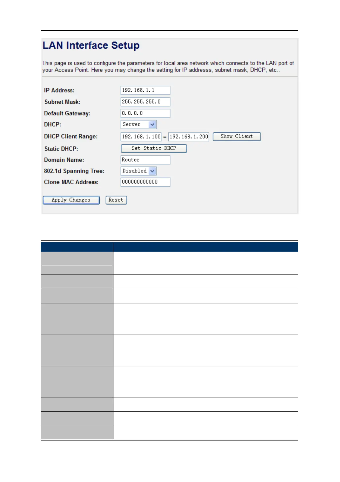 IP Address The LAN IP address of the WNRT-300, and default is 192.168.1.1. You