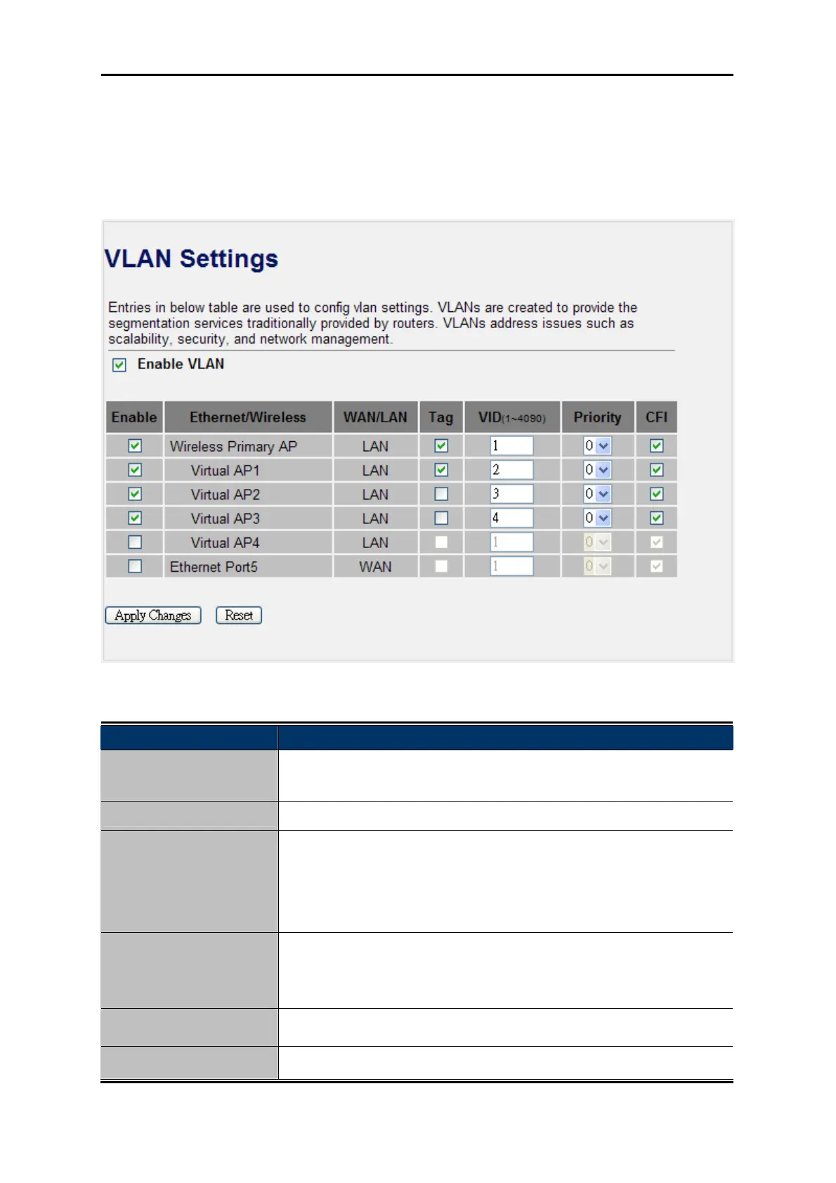The AP Router allows assign VID for selected Ethernet / Wireless