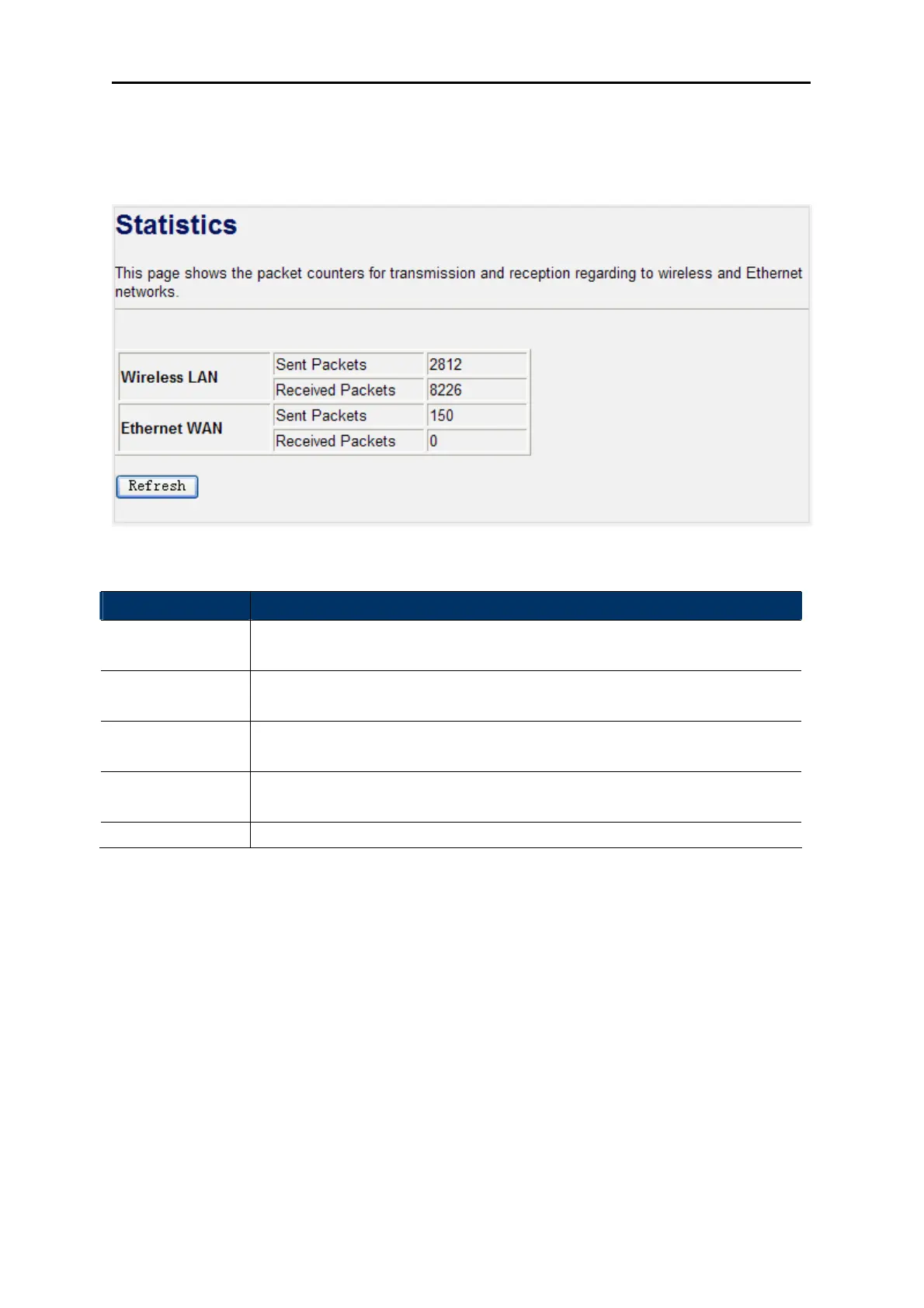 Refresh Click the refresh the statistic counters on the screen.