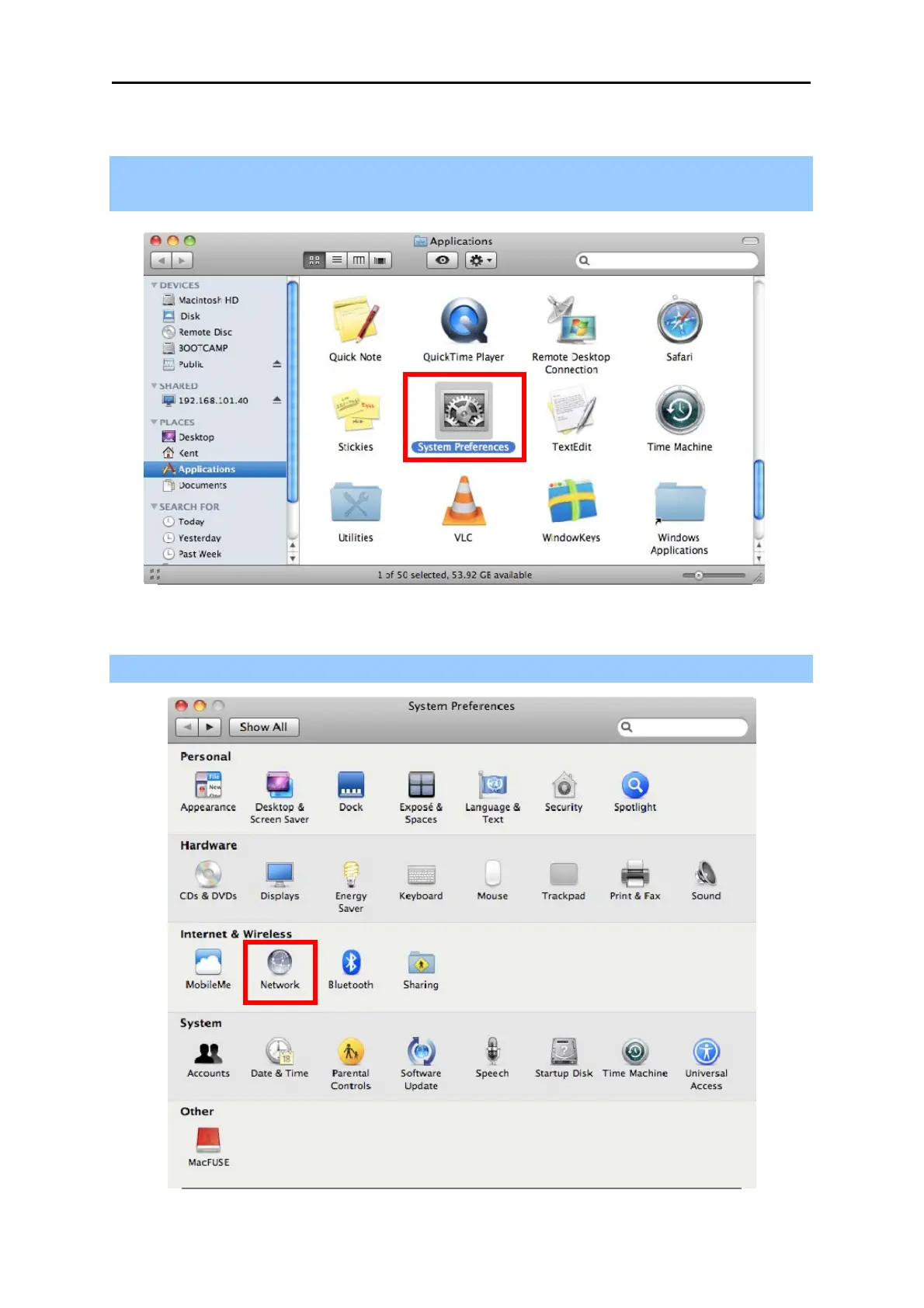 Step 2: Open Network Preference by clicking on the [Network] icon