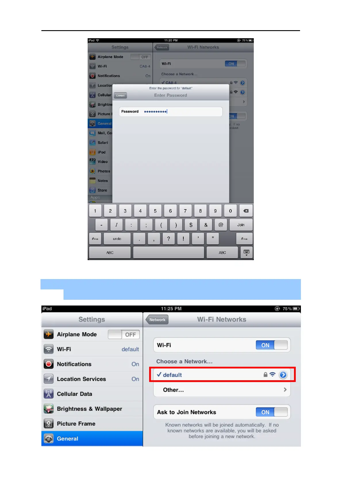 Step 5: Check if the iDevice is connected to the selected wireless network.