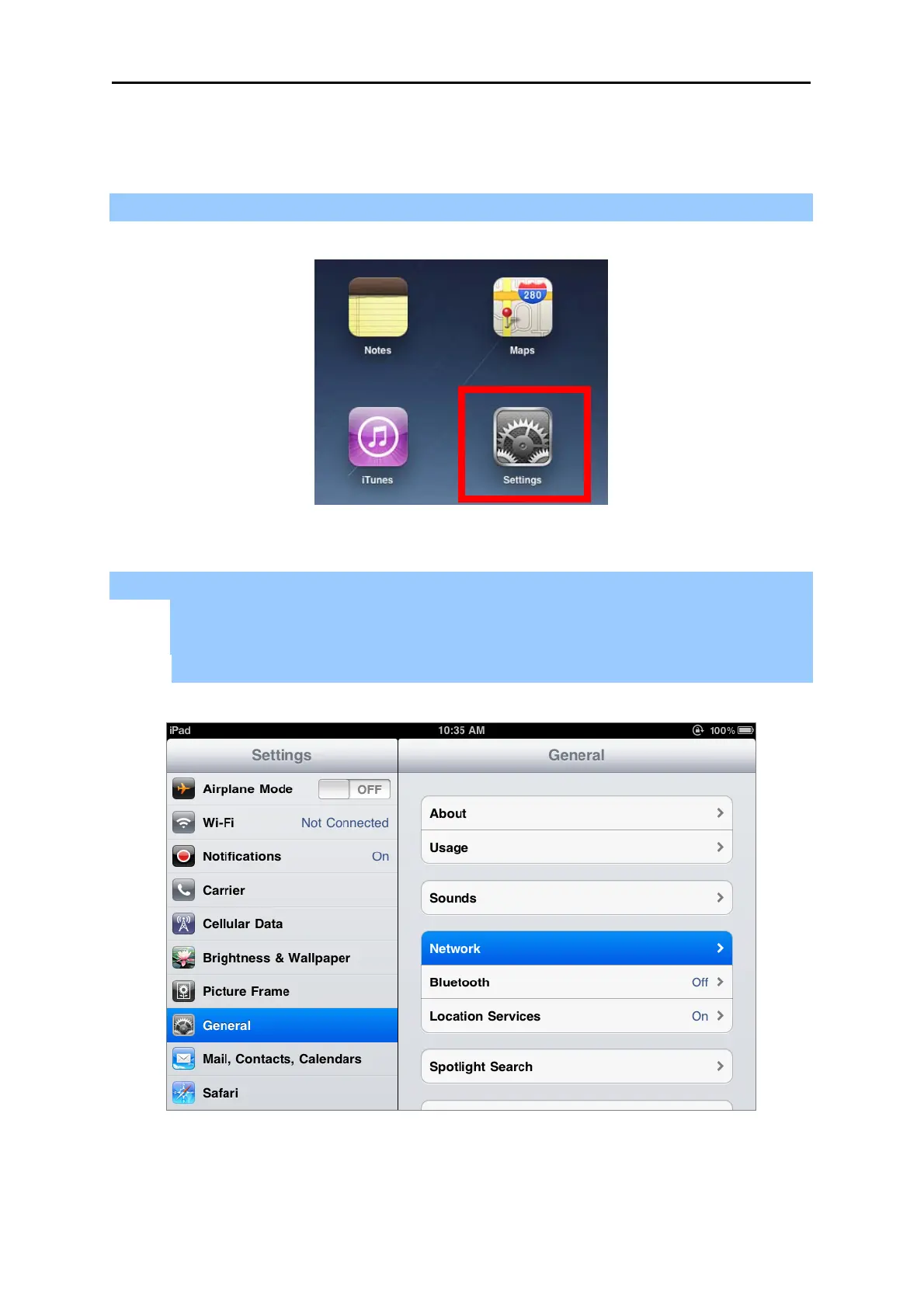 Step 1: Tap the [Settings] icon displayed in the home screen