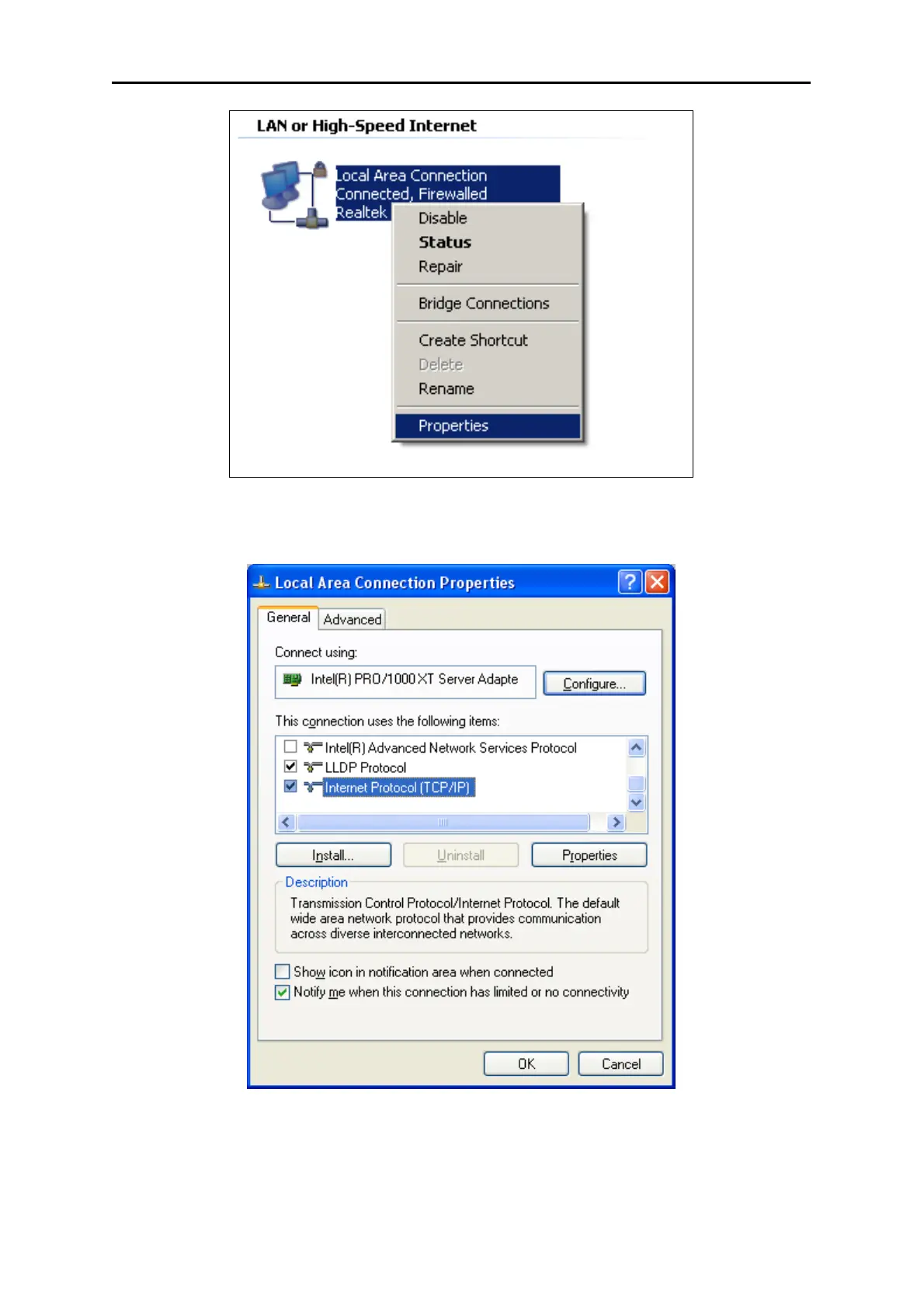 4) In the prompt window shown below, double click on the Internet Protocol (TCP/IP).
