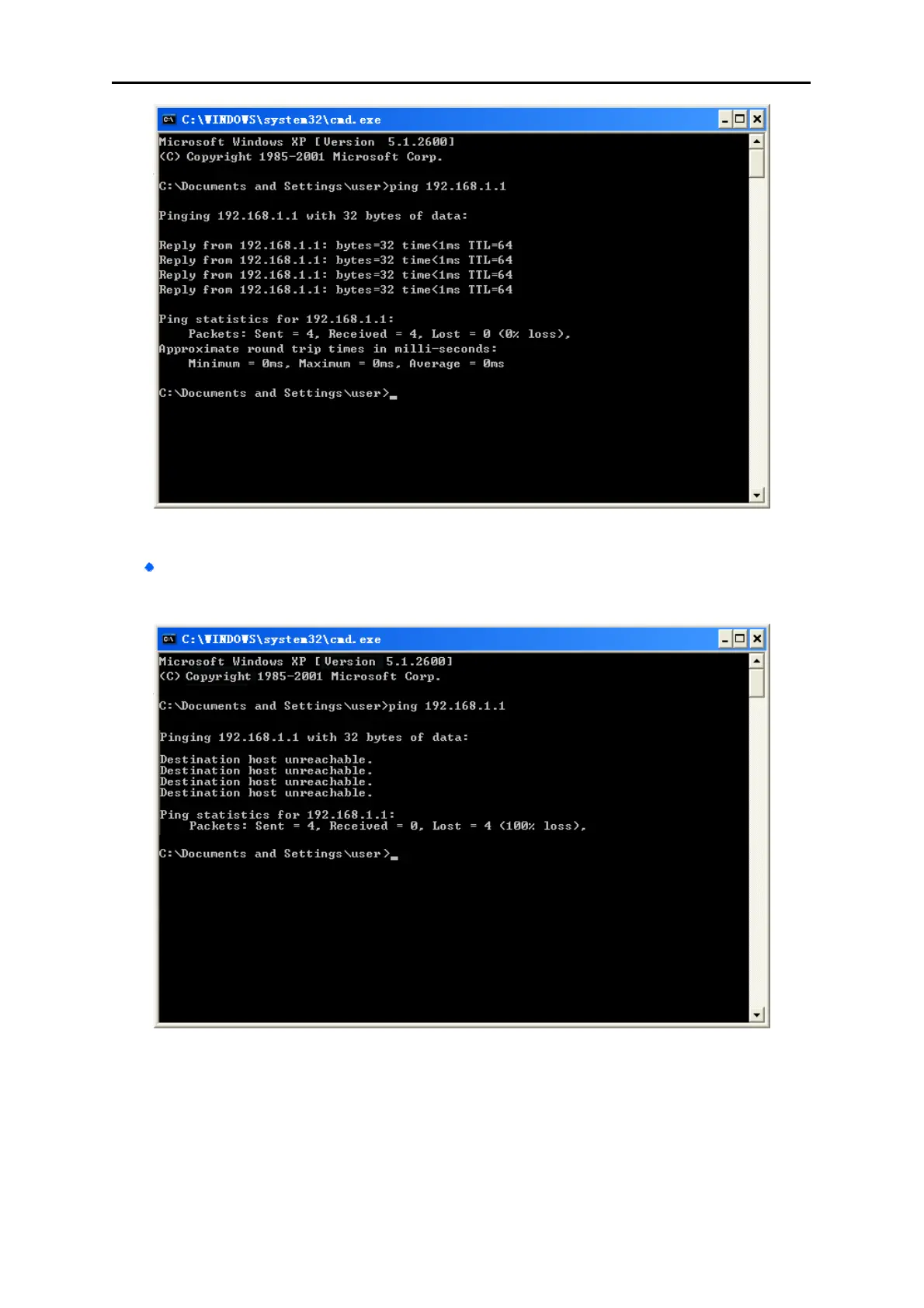 Figure 4-8 Failure result of Ping command
