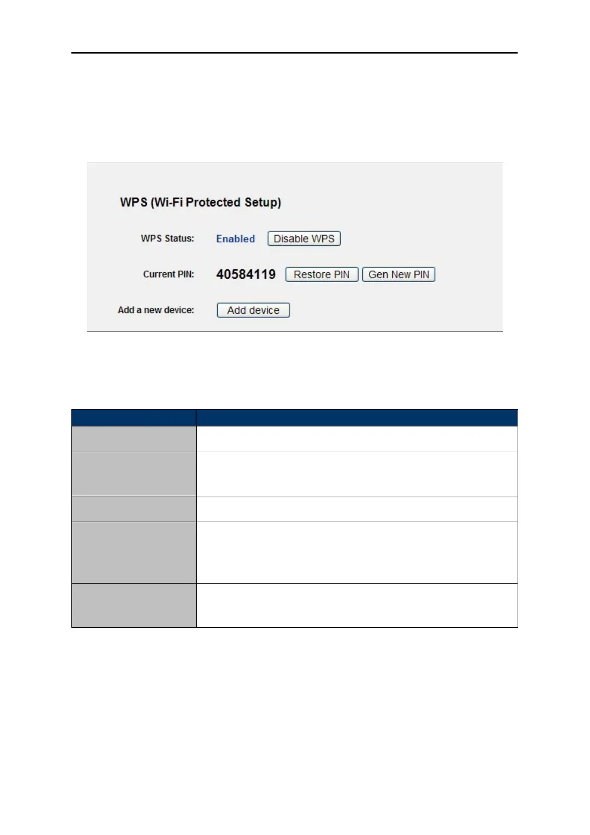 The current value of the Router's PIN displayed here. The default PIN