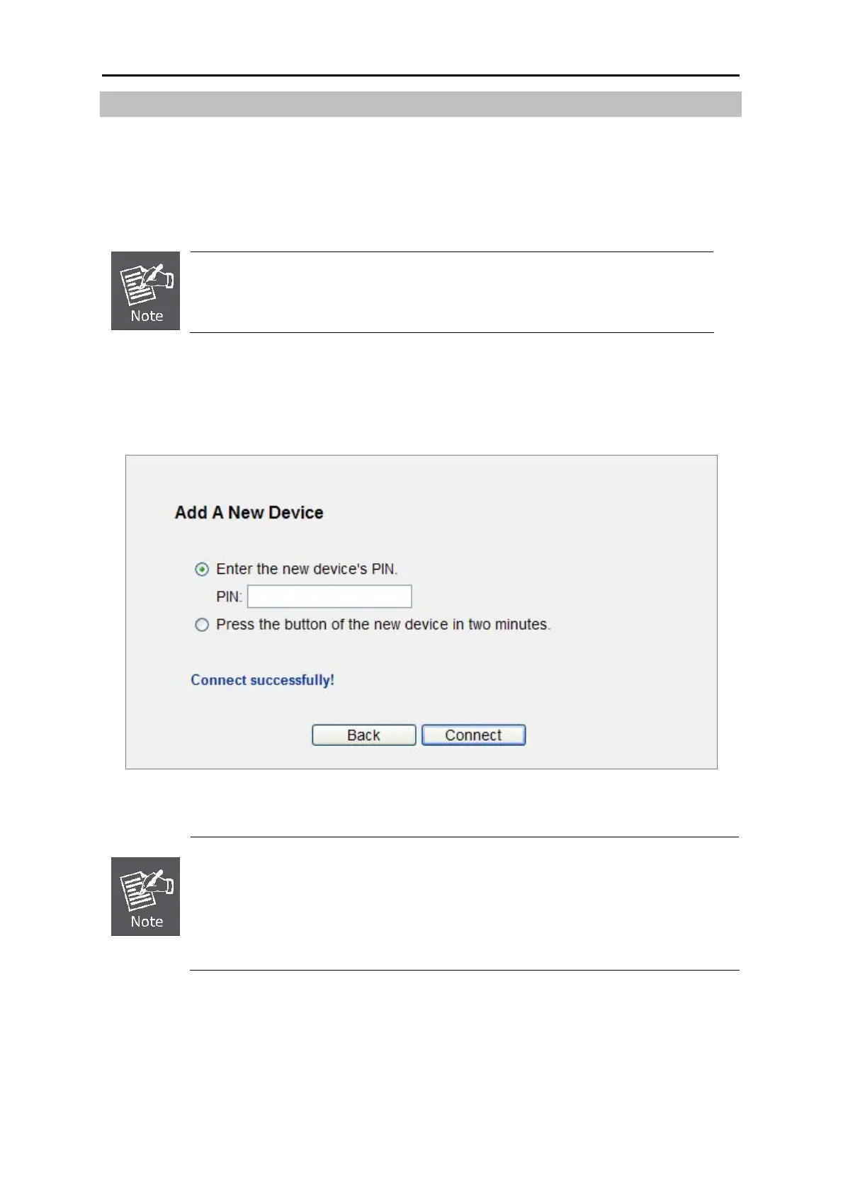 Step 3. You will see the following screen when the new device has successfully connected to the