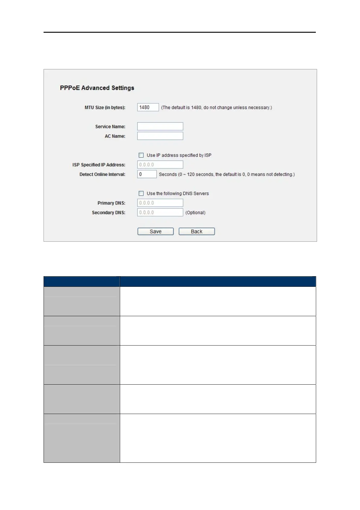 Figure 5-2 PPPoE Advanced Settings