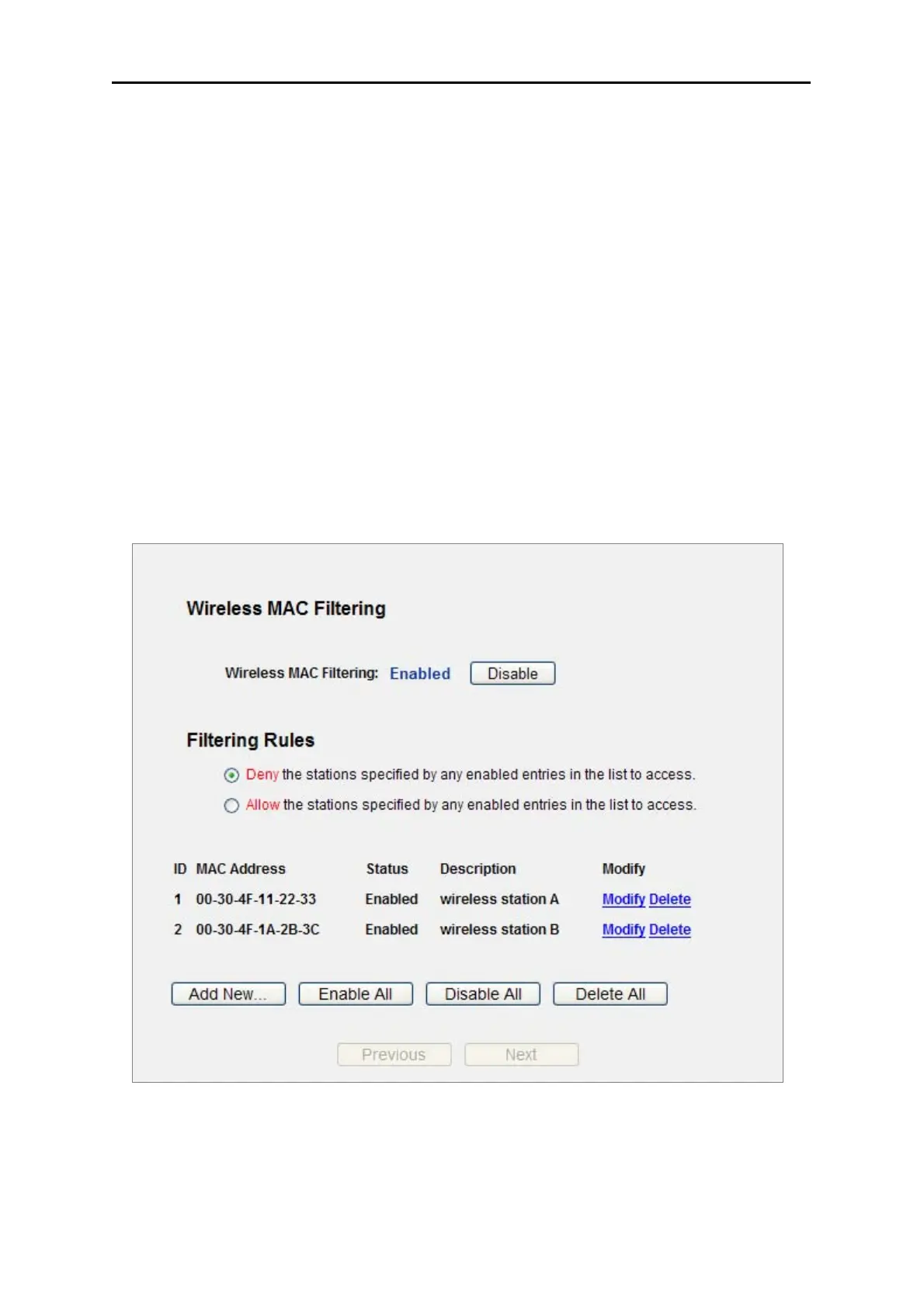 other wireless stations cannot access the Router, you can configure the Wireless MAC Address