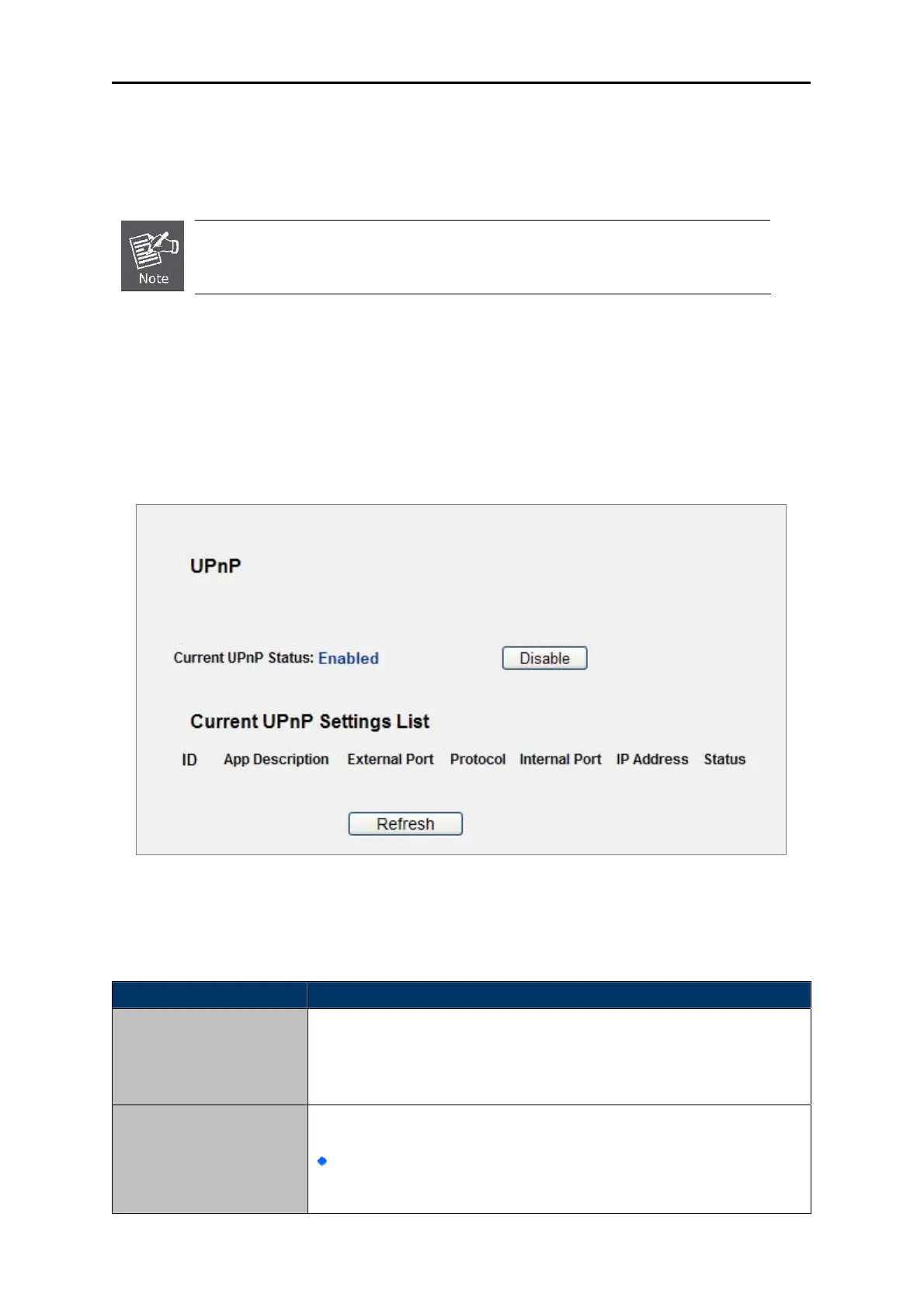 UPnP can be enabled or disabled by clicking the Enable or Disable