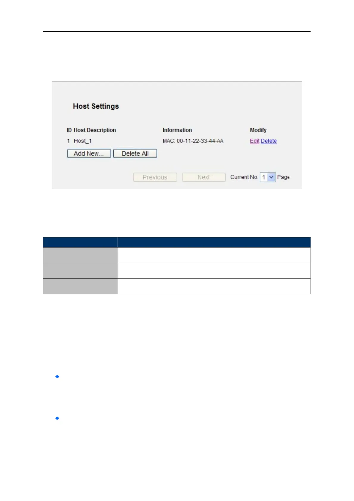 Choose menu “Access Control → Host”, you can view and set a Host list in the screen as shown in