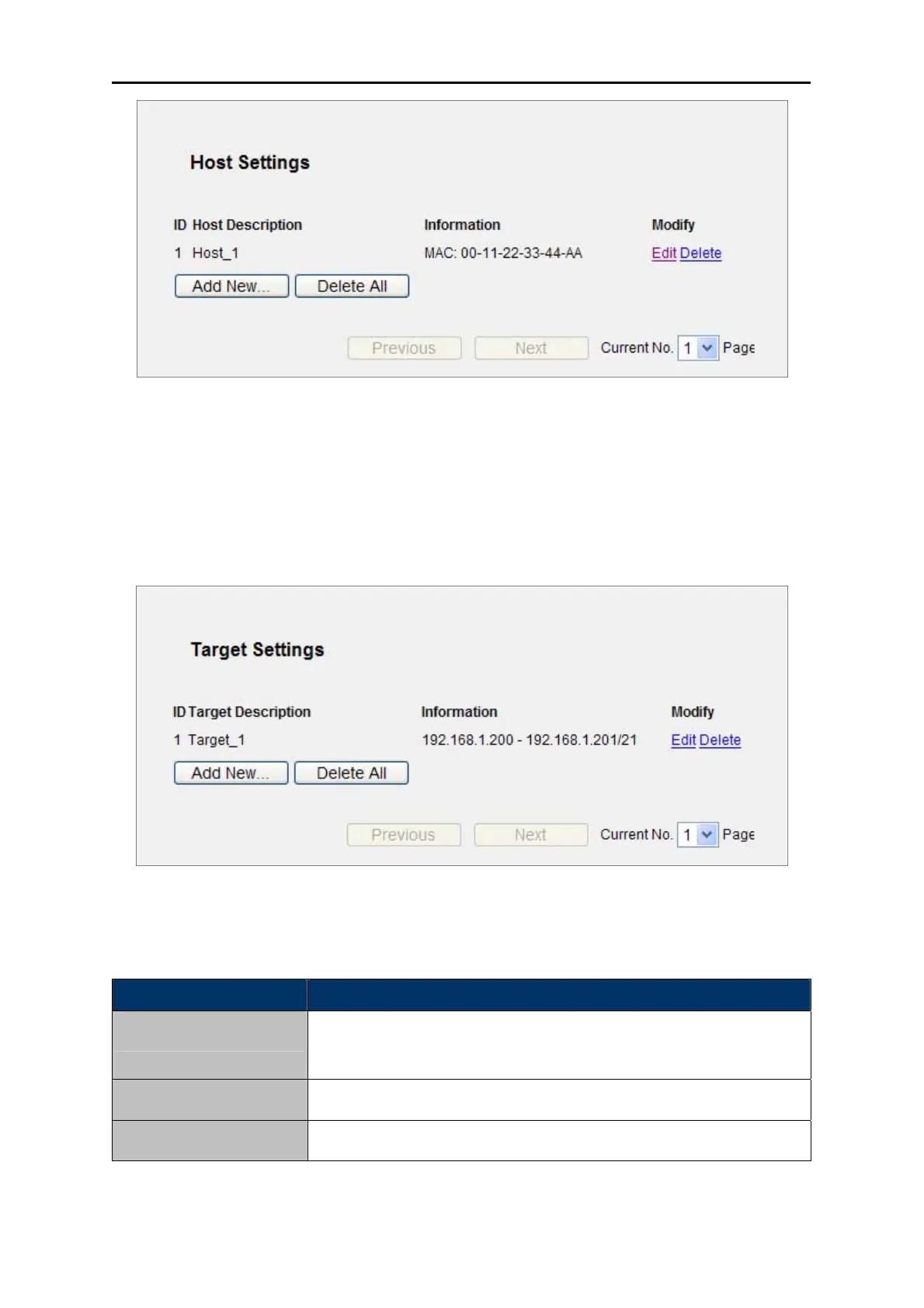 Choose menu “Access Control → Target”, you can view and set a Target list in the screen as shown