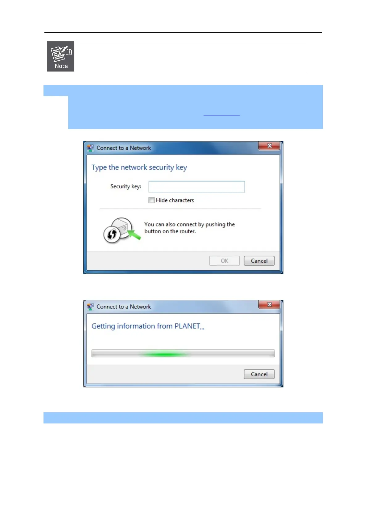 Figure 6-7 WLAN AutoConfig – type the network security key