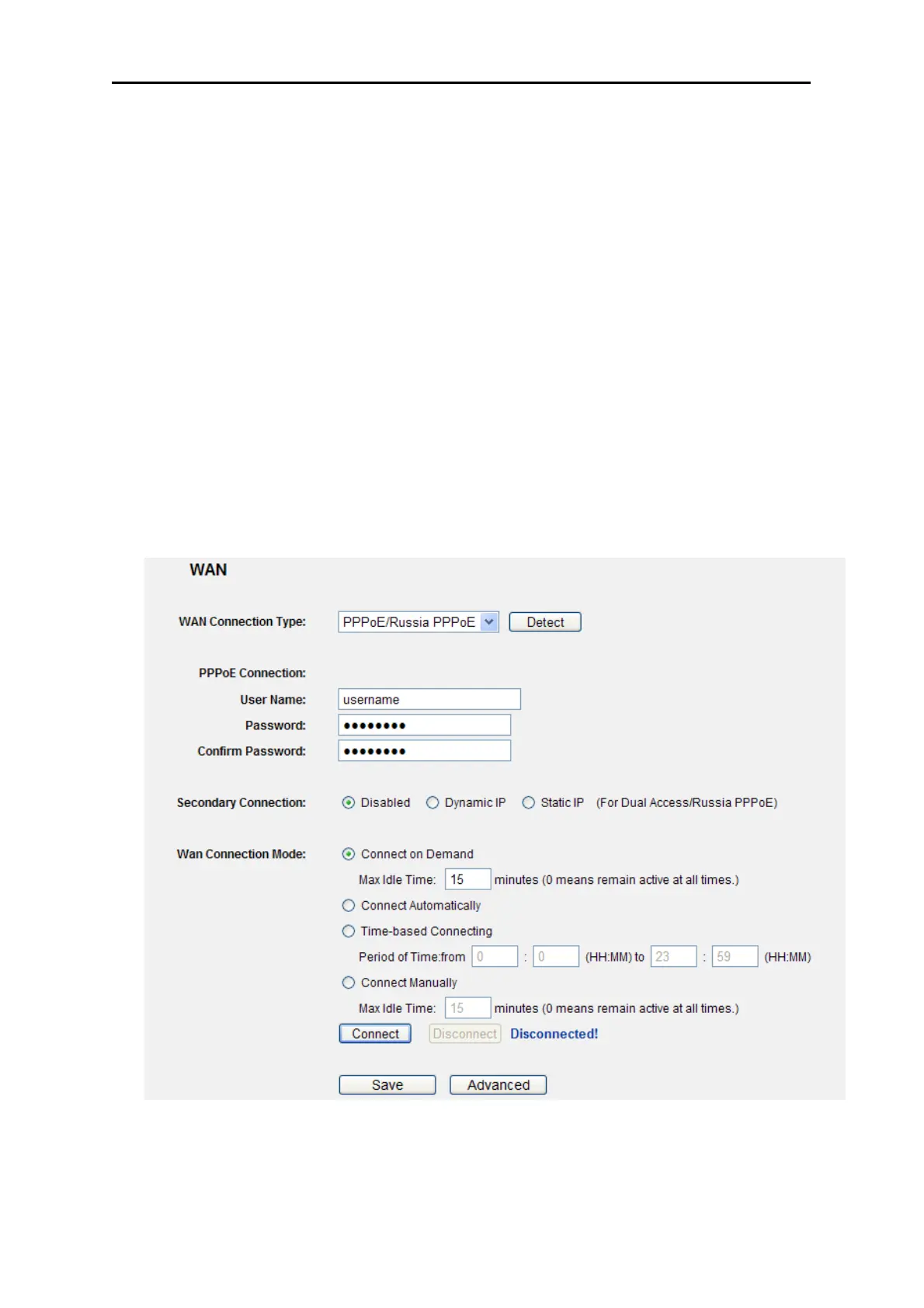 submenu. On the WAN page, select “PPPoE” for WAN Connection Type. Type user name in