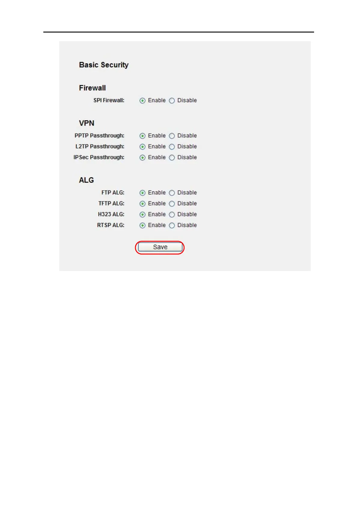 2) To change the WEB management port number: Log in to the Router, click the “Security”
