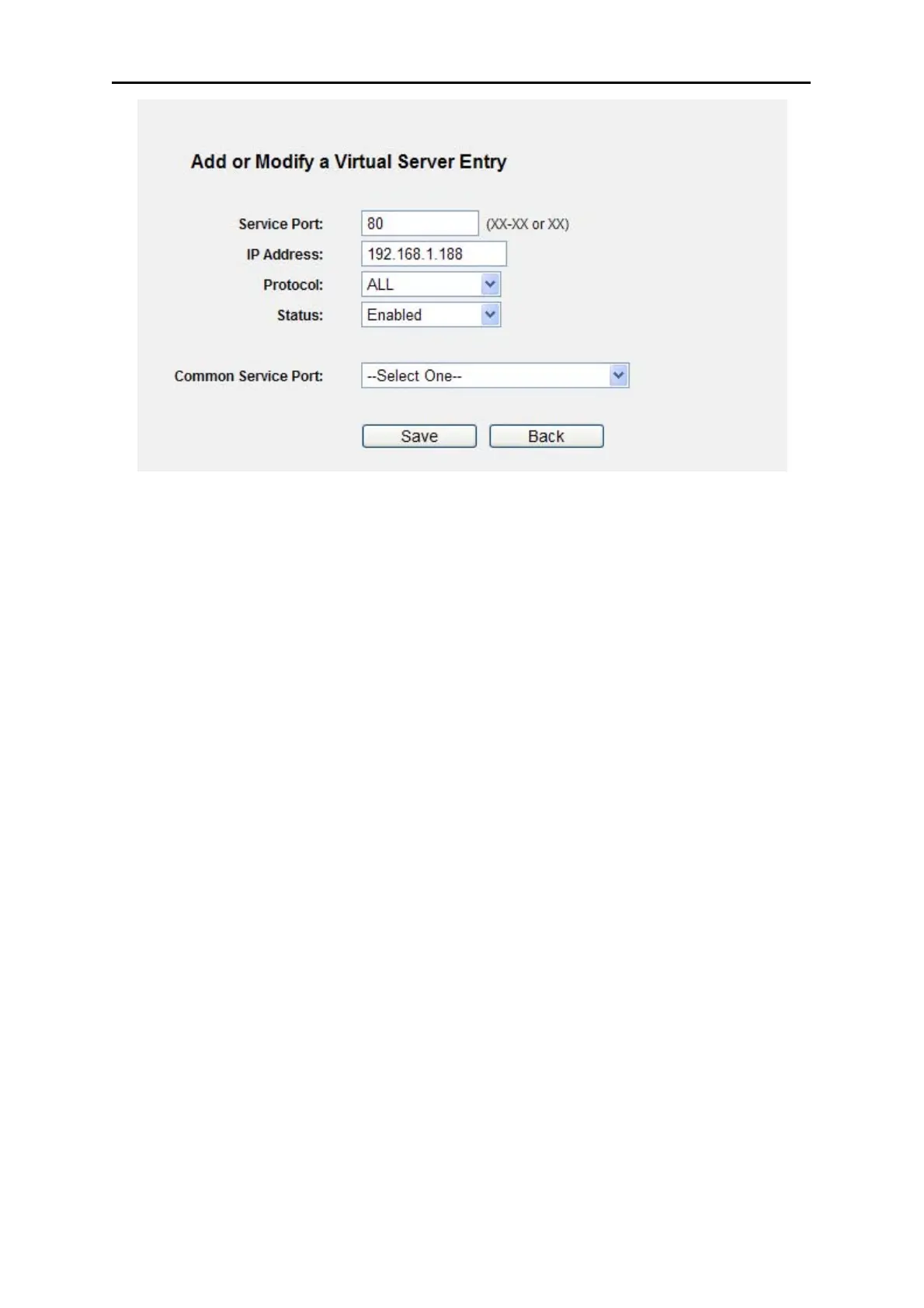 Figure A-9 Add or Modify a Virtual Server Entry