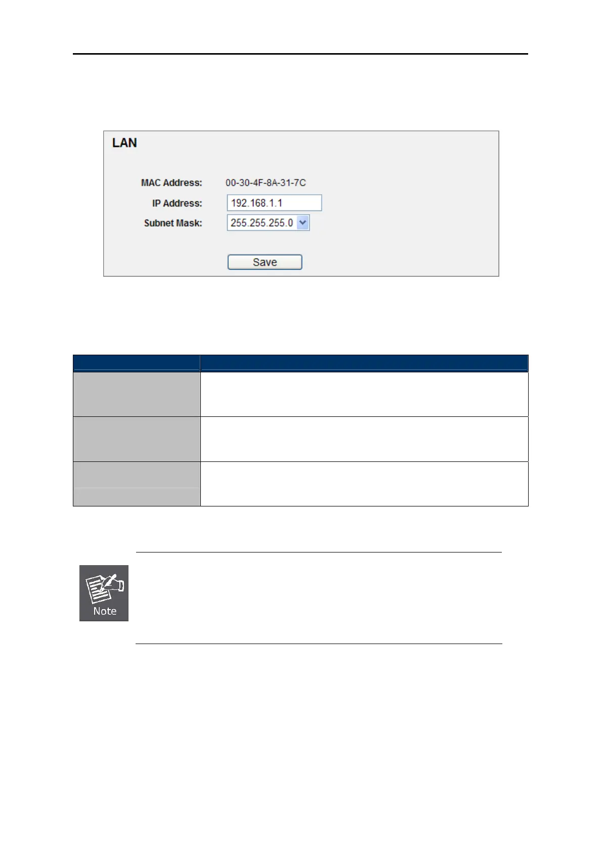 2. If the new LAN IP Address you set is not in the same subnet, the IP Address