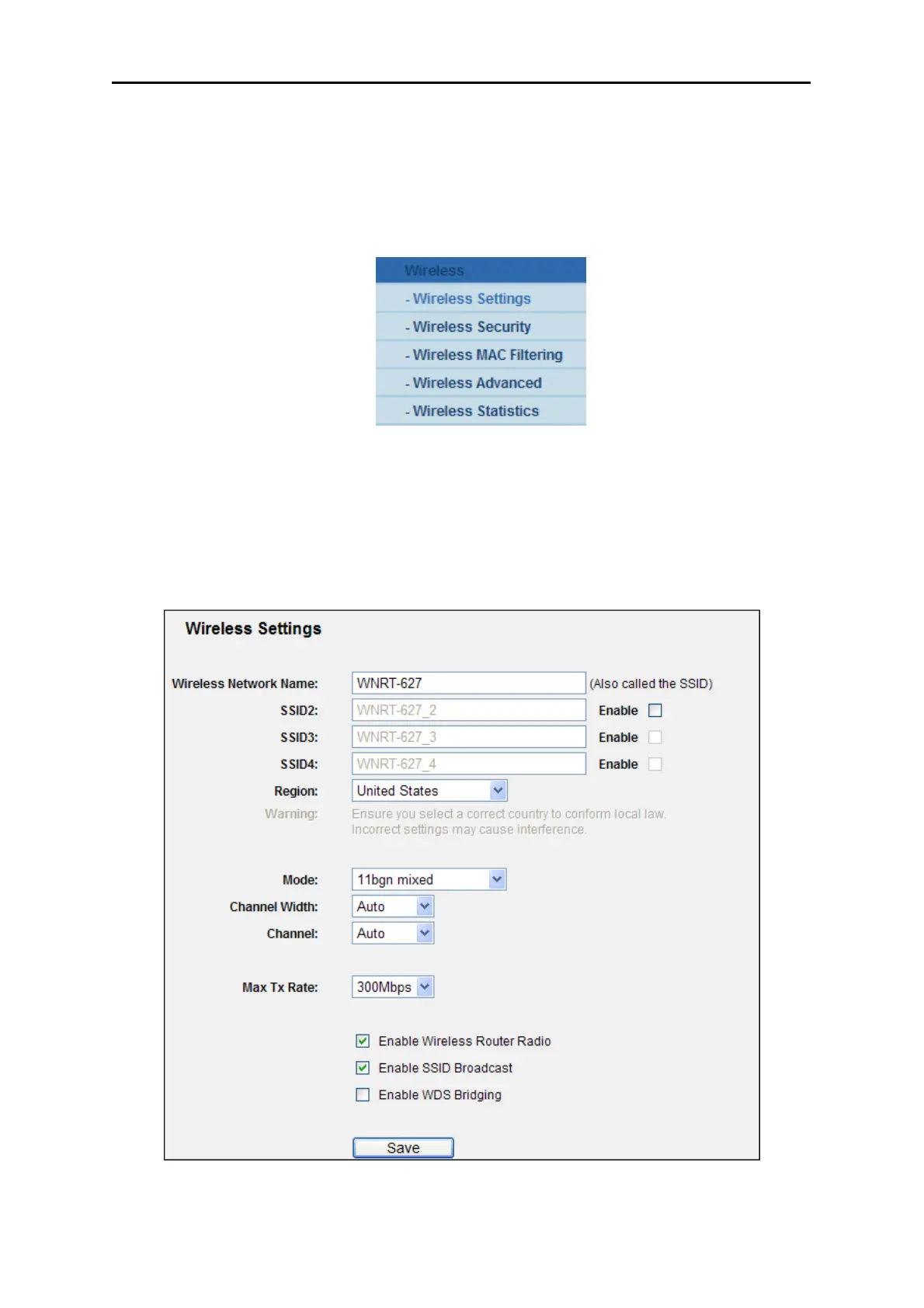 Choose menu “Wireless→Wireless Settings”, you can configure the basic settings for the wireless