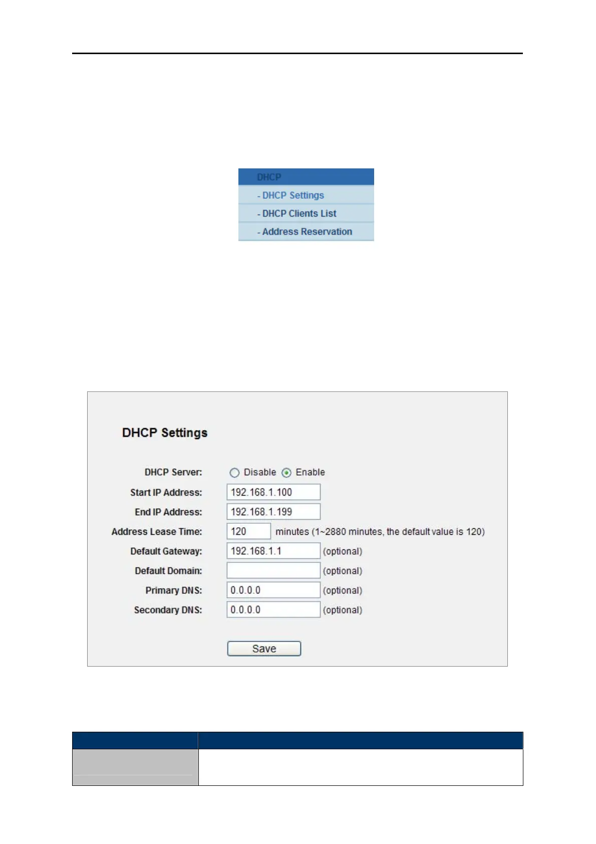 There are three submenus under the DHCP menu (shown in Figure 5-30): DHCP Settings, DHCP