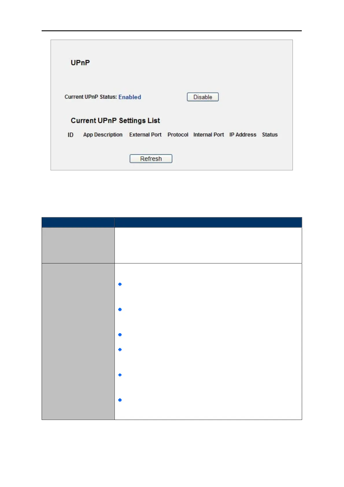 This table displays the current UPnP information.