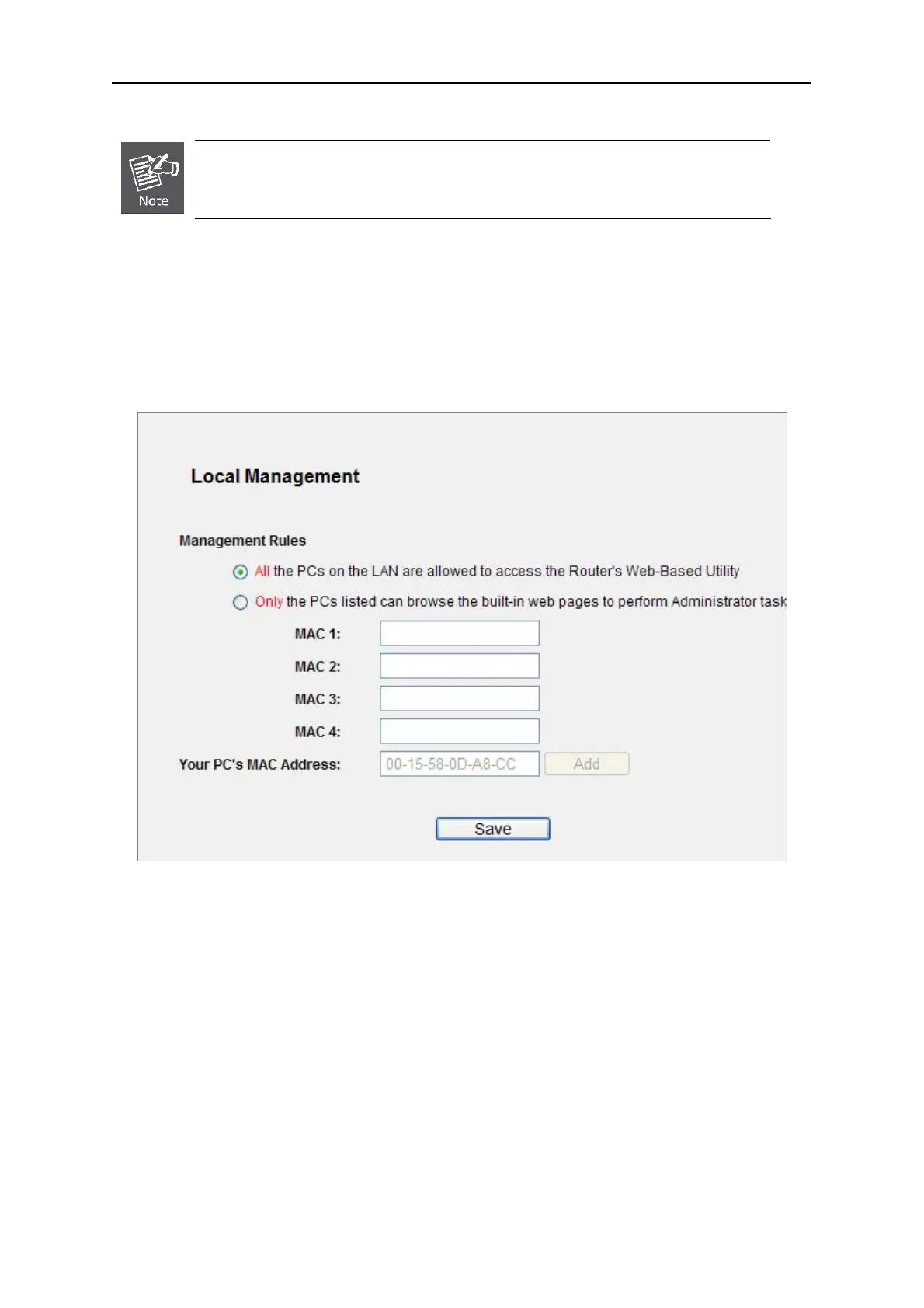 “Only the PCs listed can browse the built-in web pages to perform Administrator tasks”, and