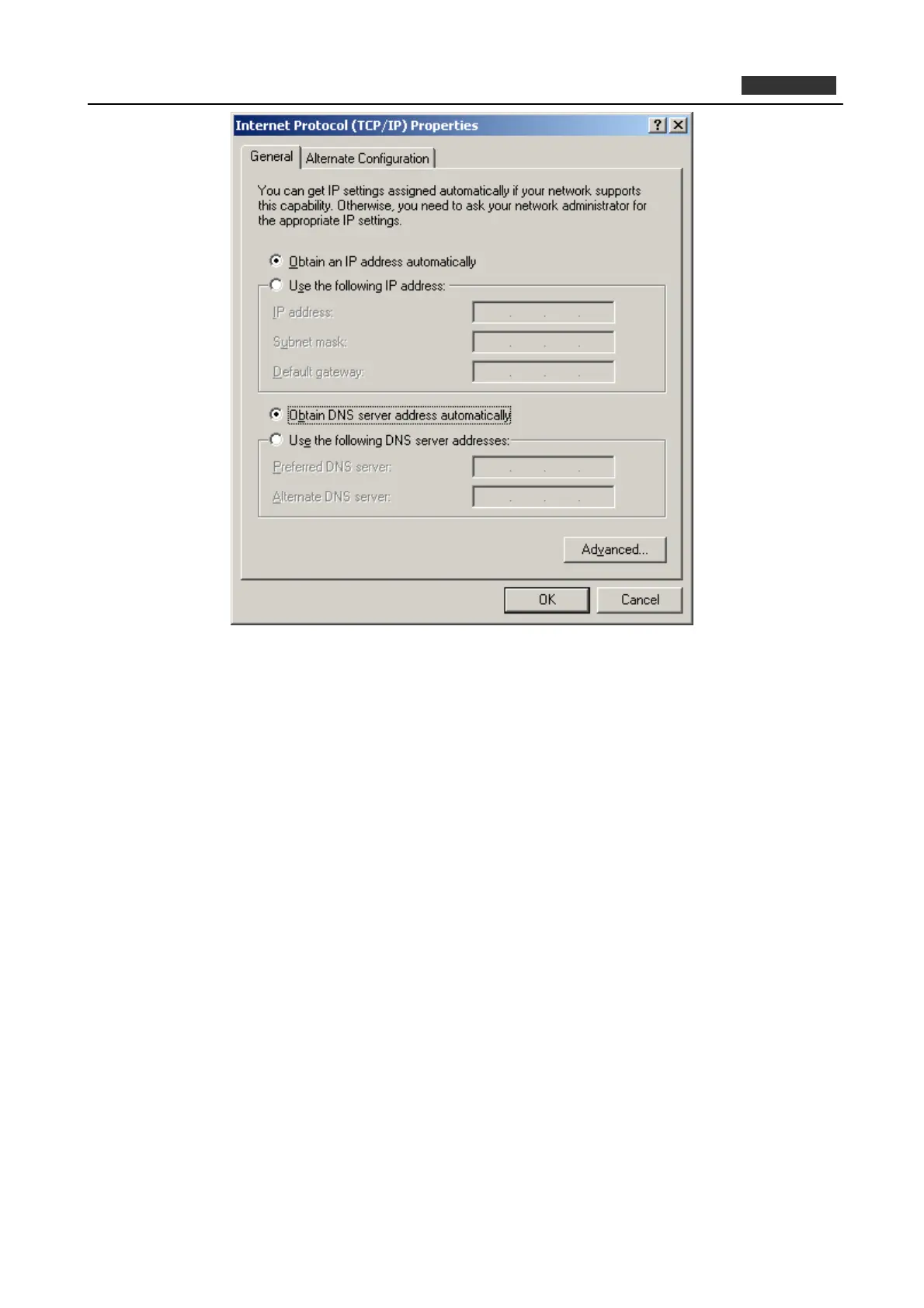 1 Select Use the following IP address radio button.