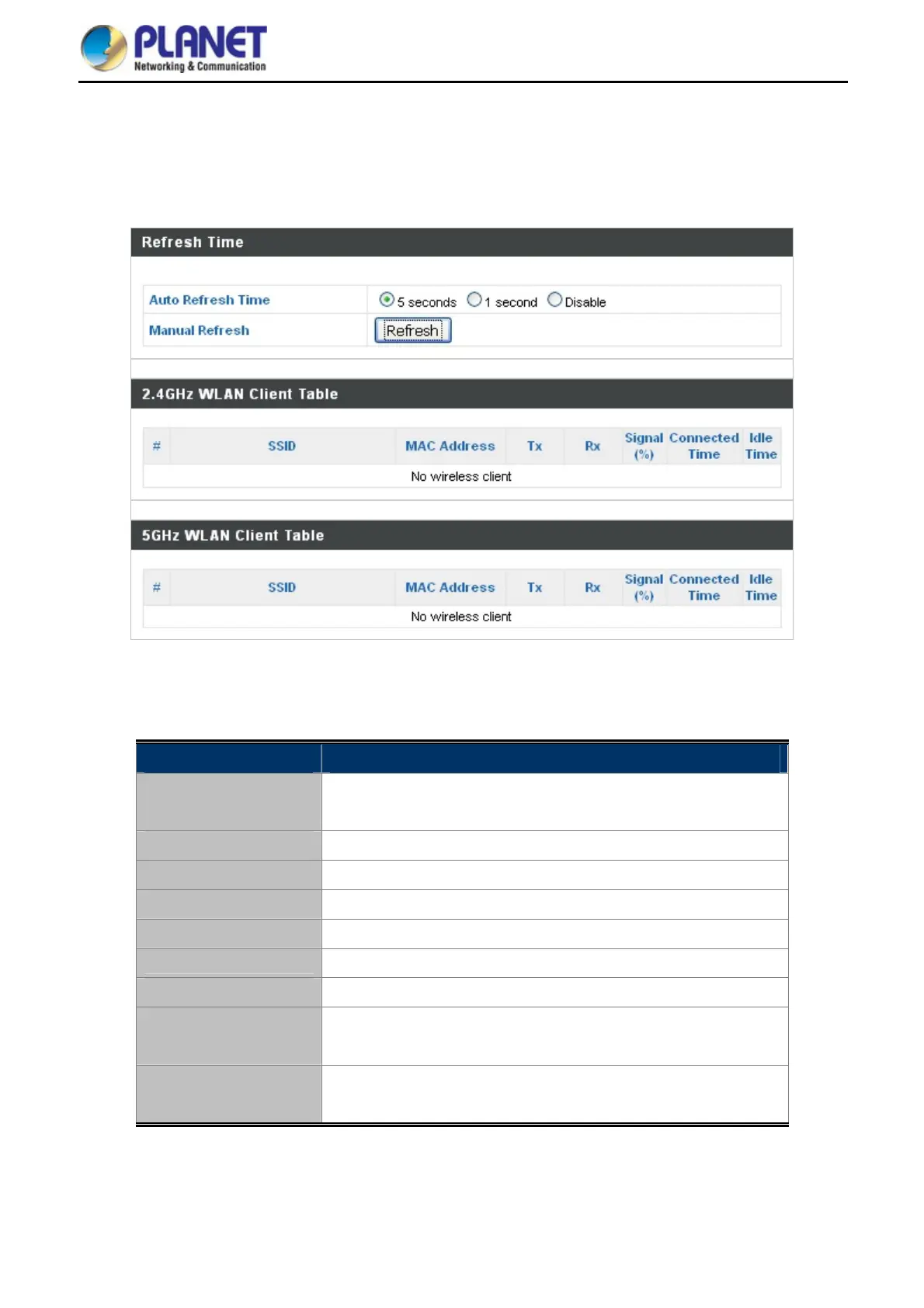 The āWireless Clientsā page displays information about all wireless clients connected to the range extender on