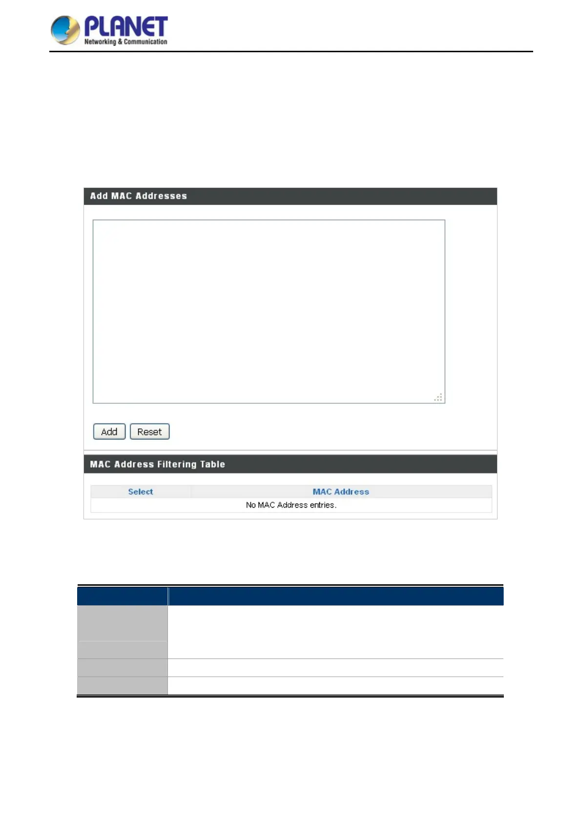 Add Click “Add” to add the MAC Address to the MAC Address filtering table.