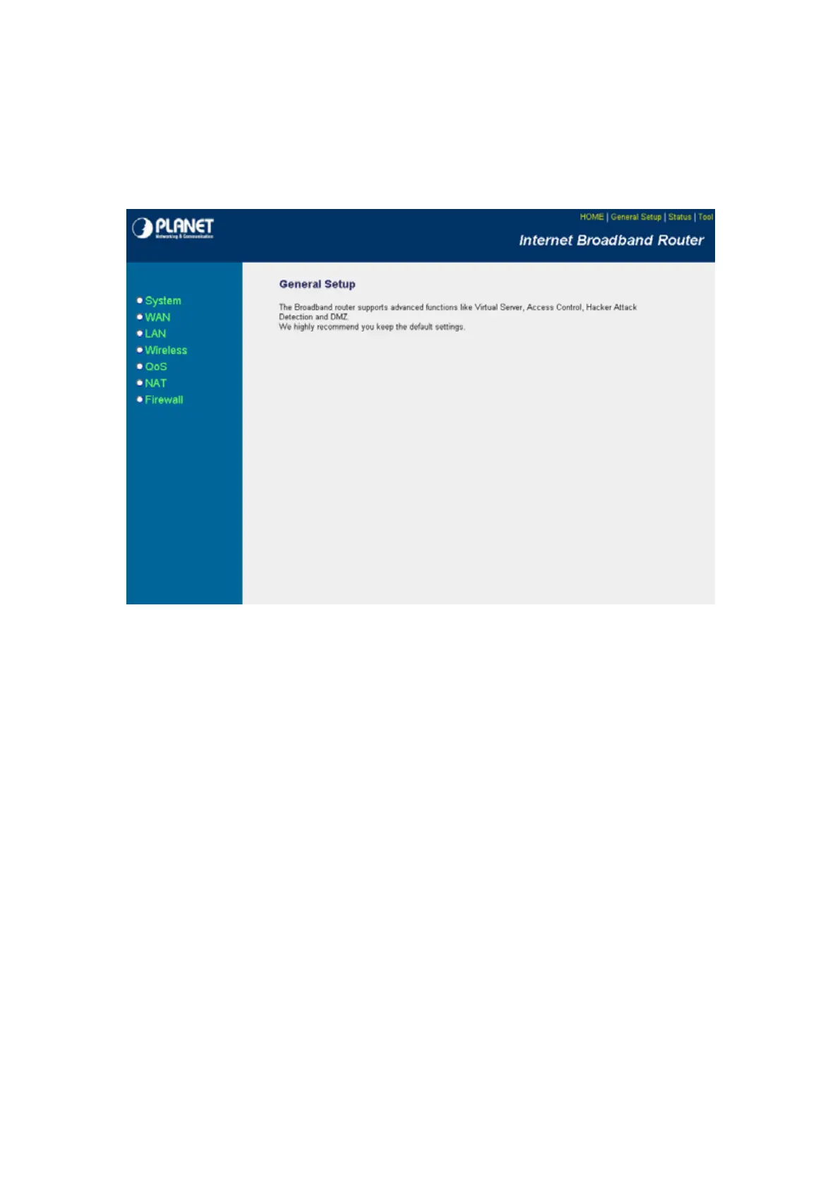 The General Setup contain advanced features that allow you to configure the router to meet the