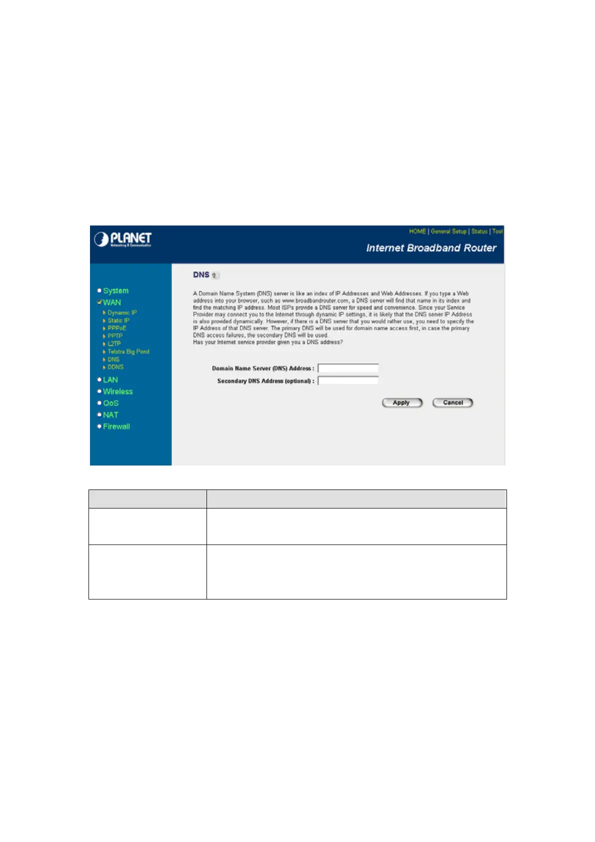 backup. The secondary DNS will be used when the above primary DNS