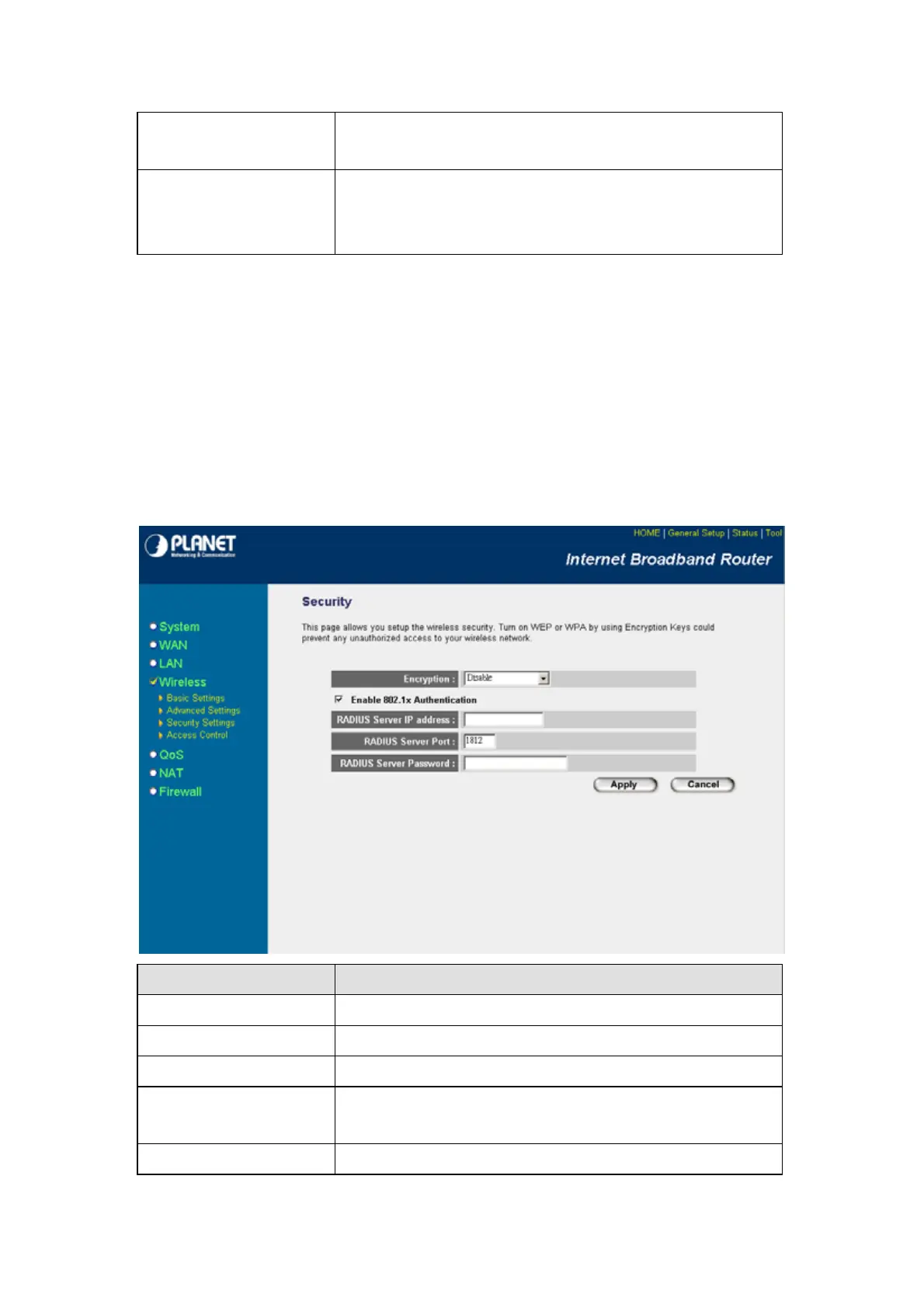 Encryption If you want to use 802.1x only, keep this setting in “Disable”.