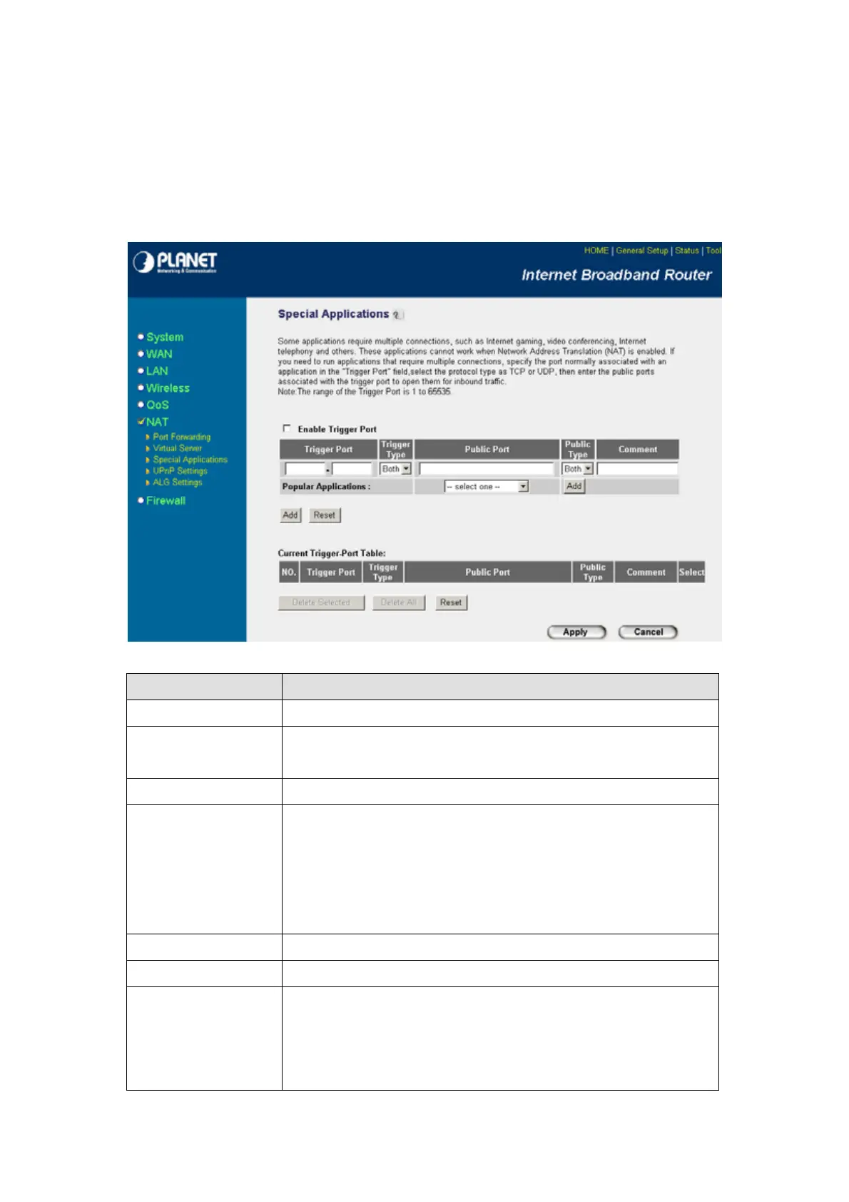 Trigger Port This is the out going (Outbound) range of port numbers for this particular