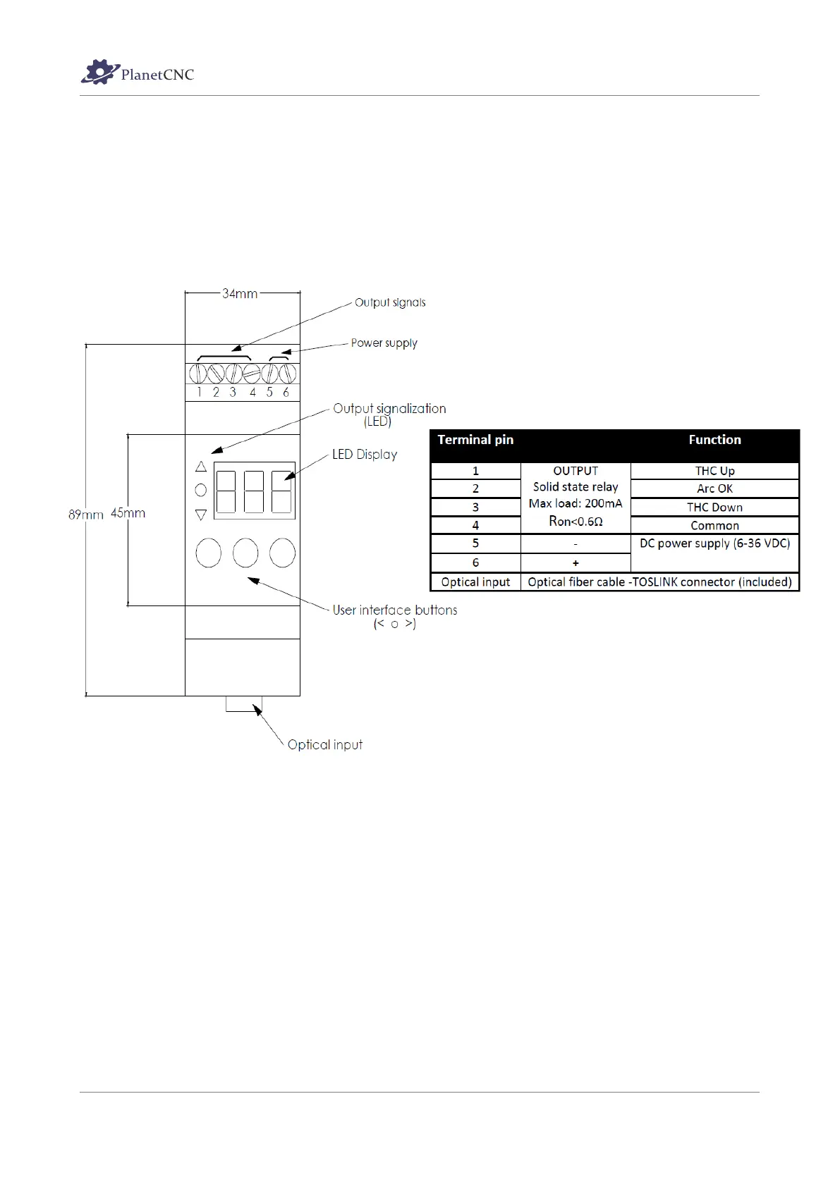 PlanetCNC THC - 2 Hardware; Torch Height Controller Terminal Description