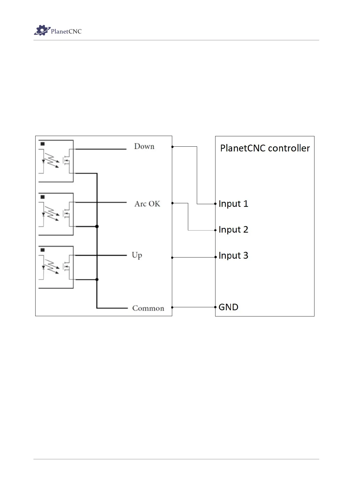 Please note that Down, Up, Arc OK signals can be connected to any input of PlanetCNC