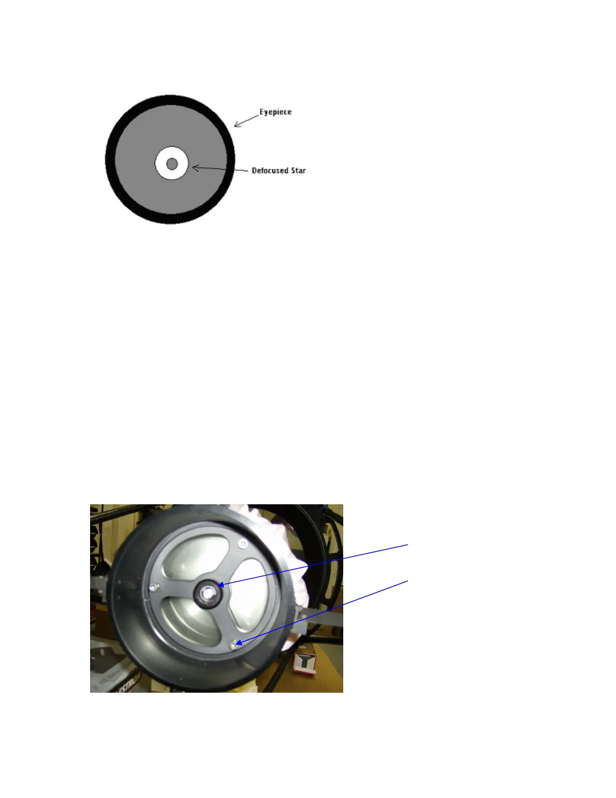 Collimating is a two-person job: one person looks through the eyepiece while one person