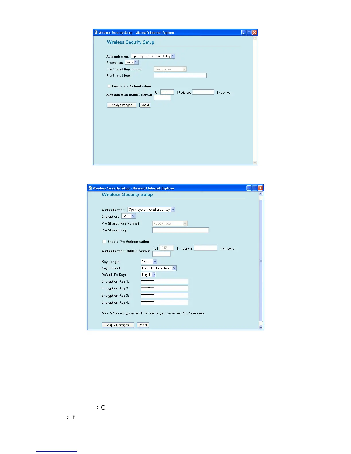 Default Tx Key: You can enter four Encryption keys and select one of them as default Tx key.