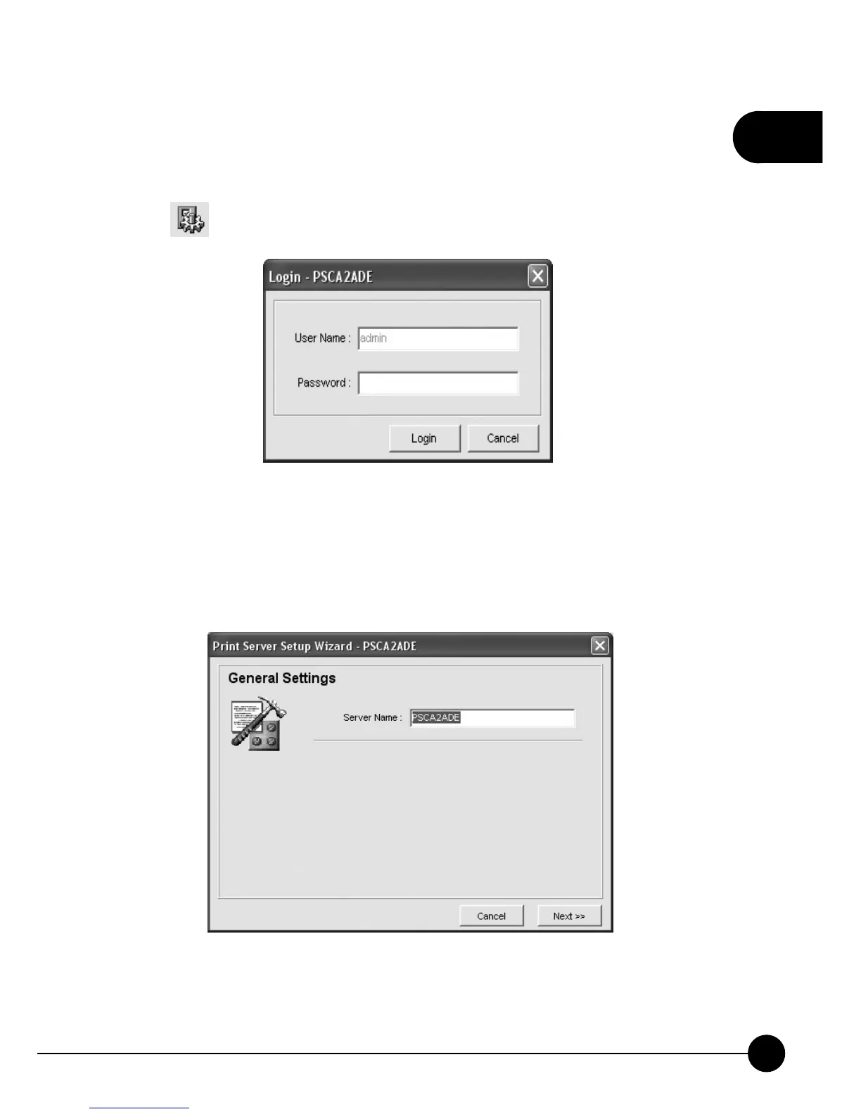 Password for Mini-101U Print Sever. The default User Name isņadmin