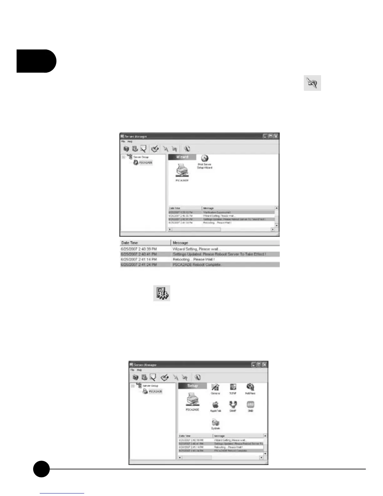 the task bar to reboot the print server. During rebooting, please DO NOT