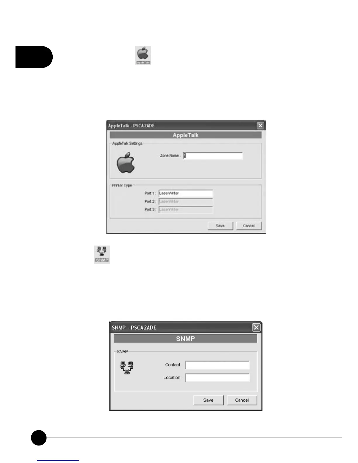AppleTalk Zone. The Printer Type Port 1~3 shows the type of the
