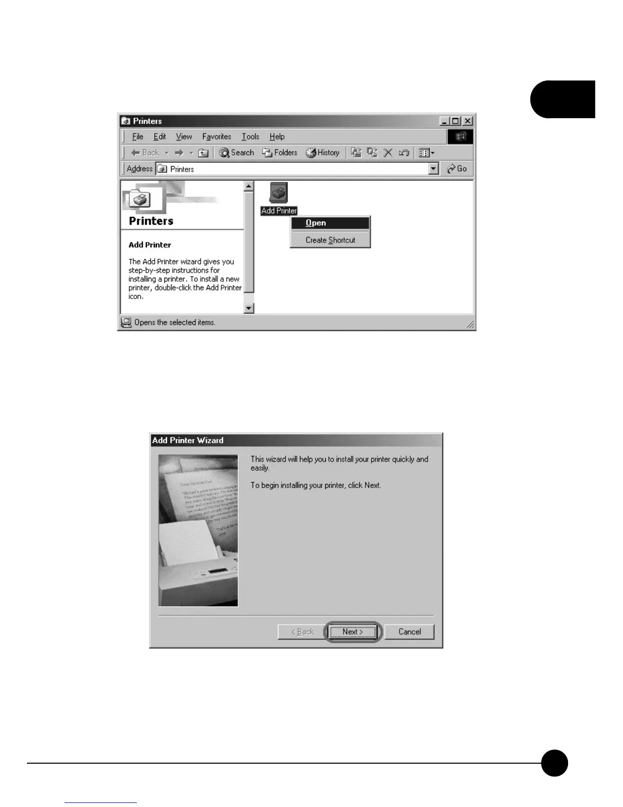 2.Enter the Printers setting page, please clickņAdd PrinterƖOpen.Ň