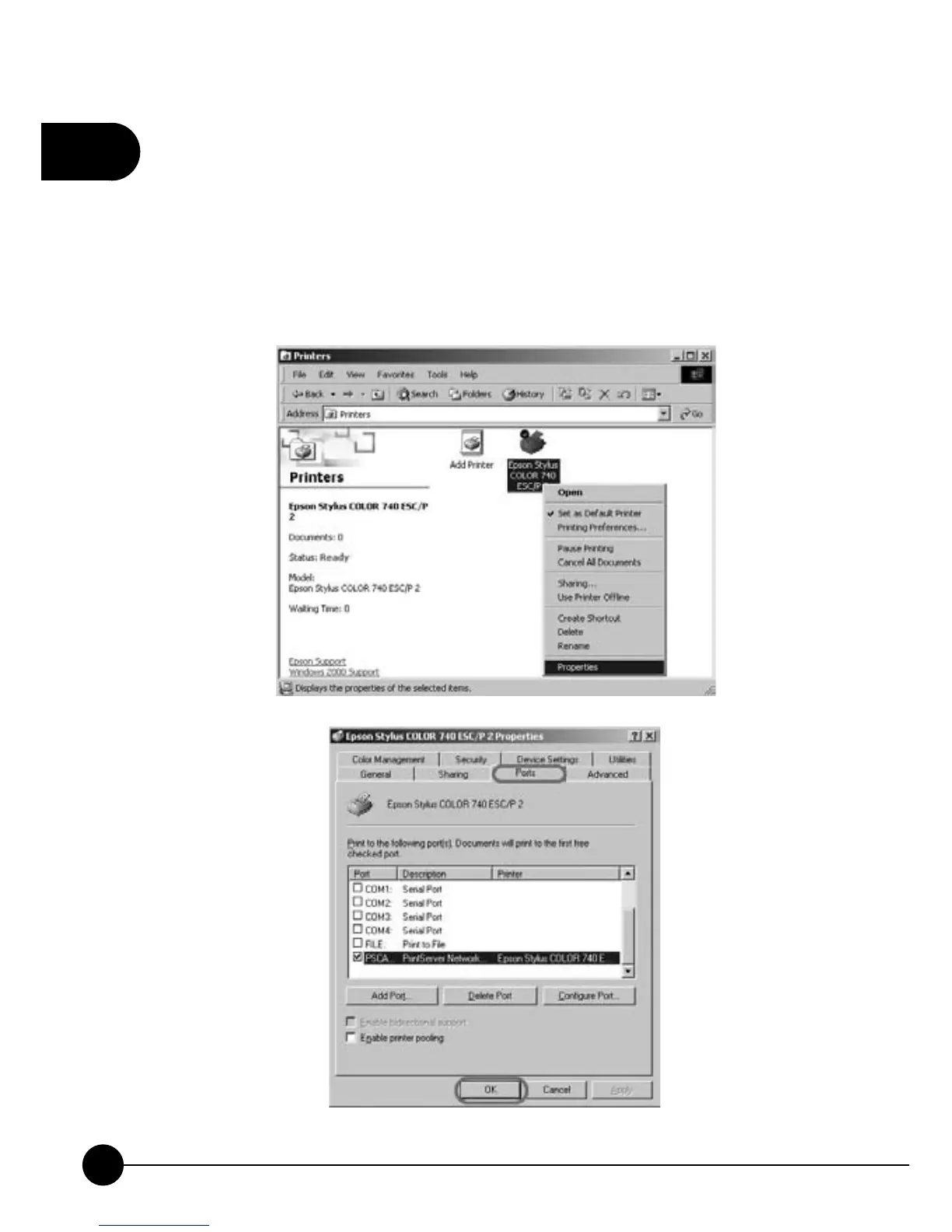theņPortsŇtab to check if the printer port was installed correctly (It