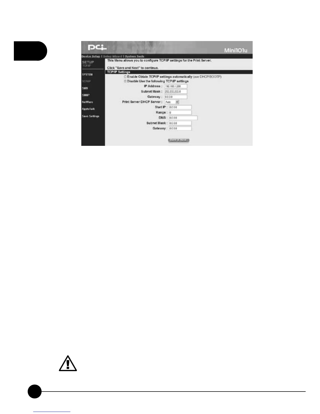 œDisable Use the following TCP/IP settingsĈIf you do not use DHCP/