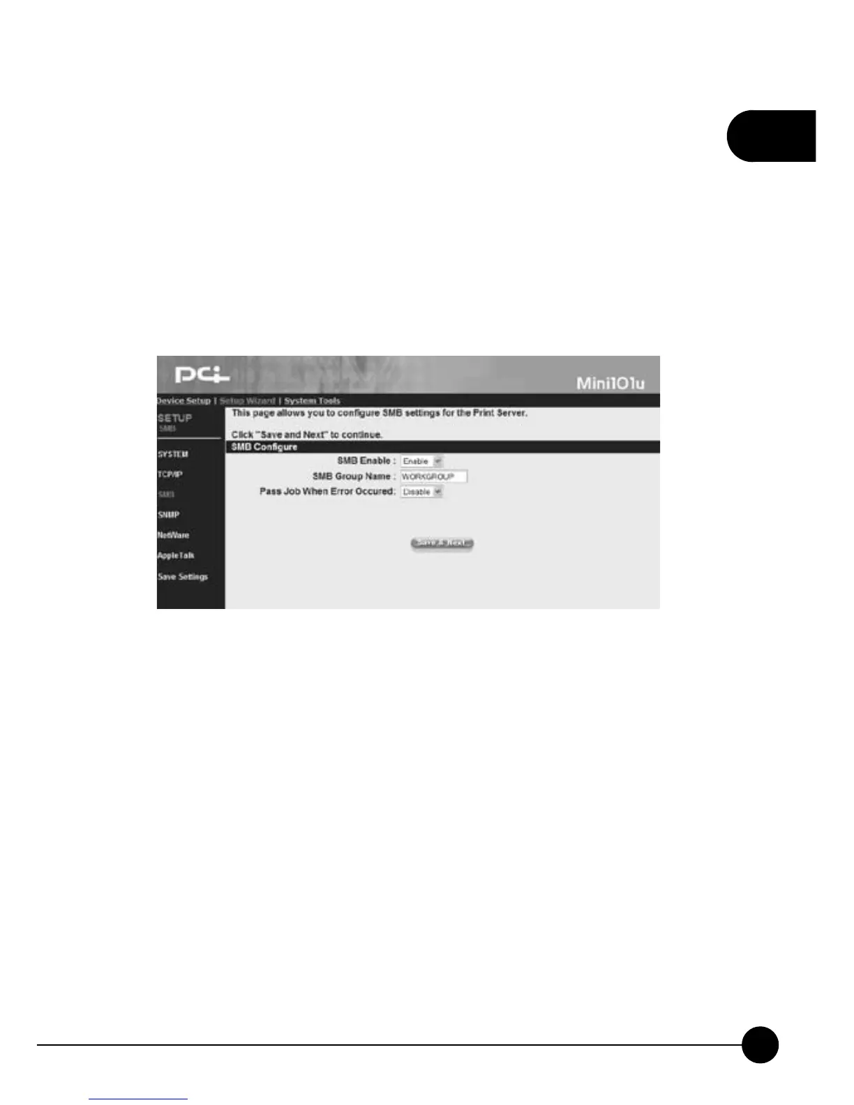 Mini-101U Print Server supports SMB (Server Message Block) protocol.