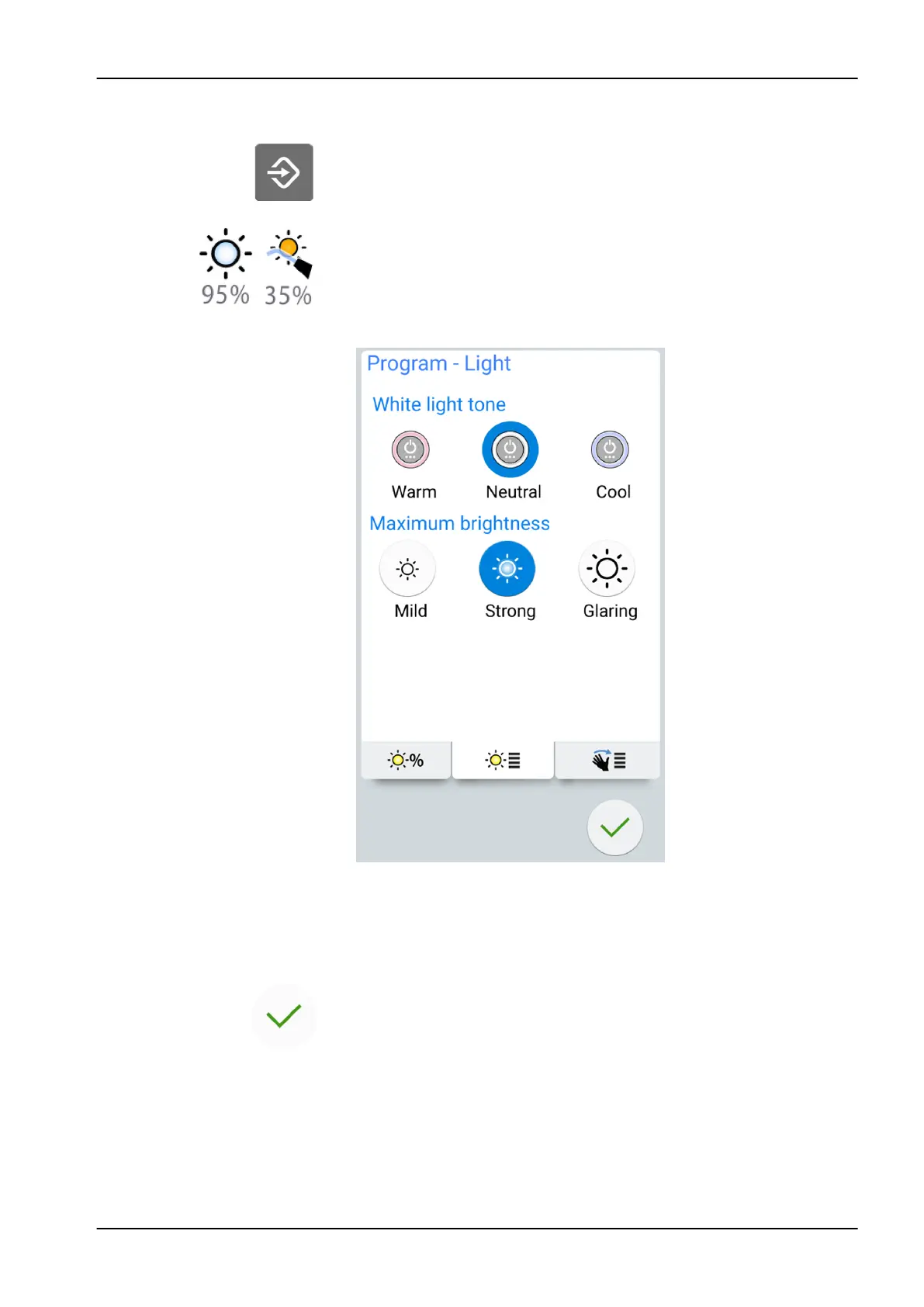 4. Select the white light tone by pressing it.